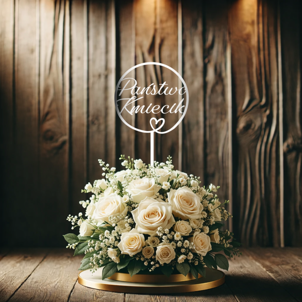 Lustrzany topper na tort z imionami Pary Młodej
