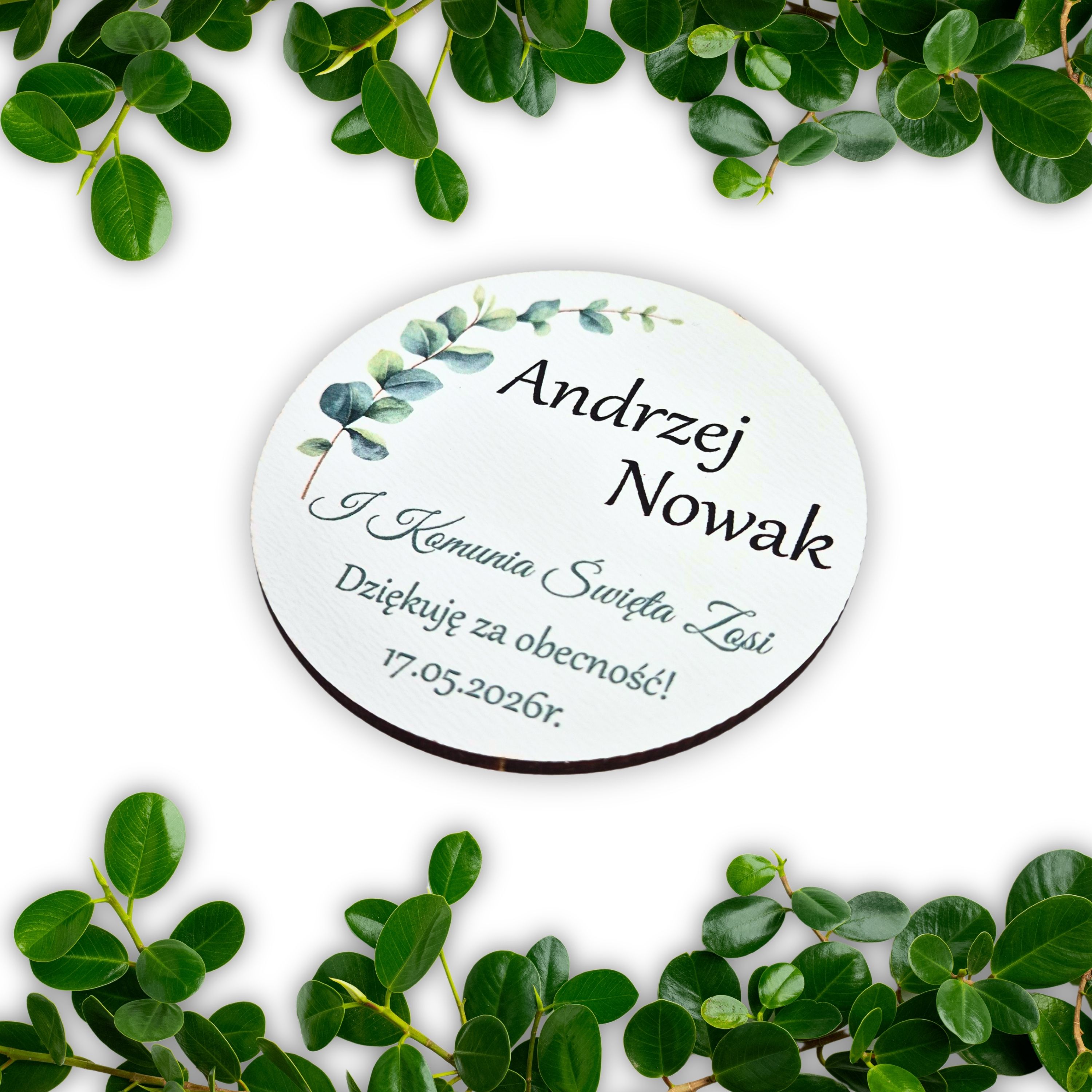 Personalizowane podziękowanie na Komunię dla gości - Magnes HDF