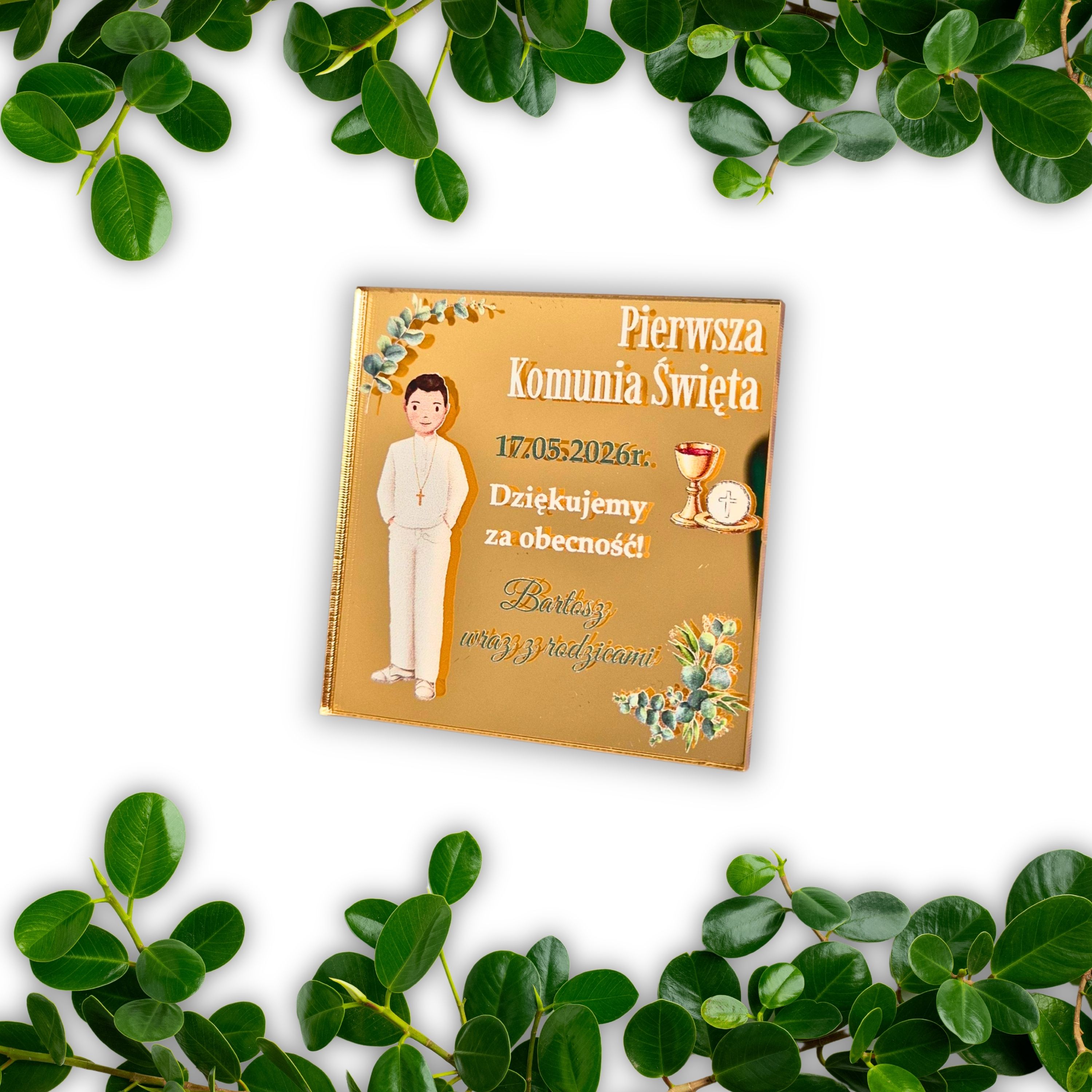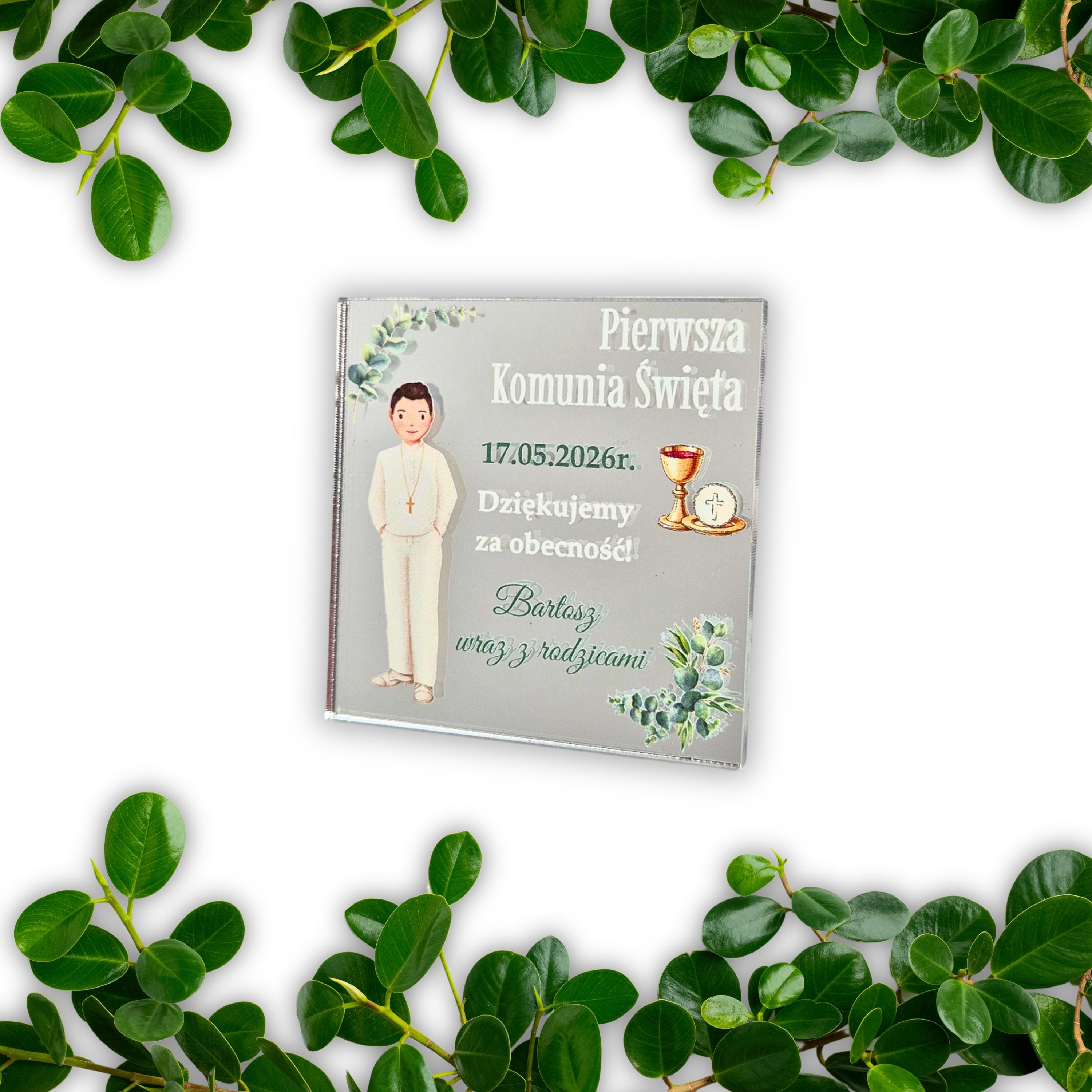 Personalizowany magnes dla chłopca - podziękowania na Komunię dla gości