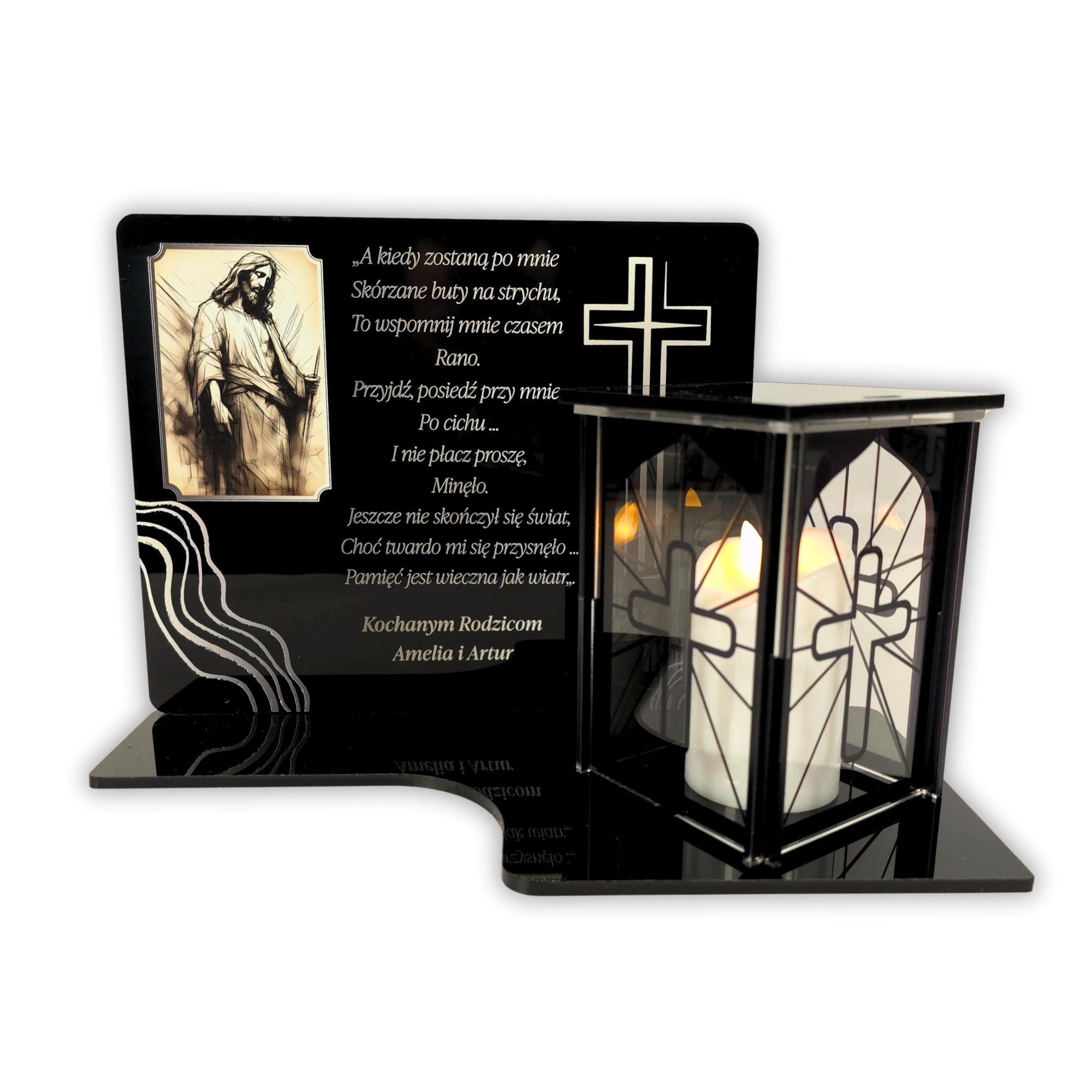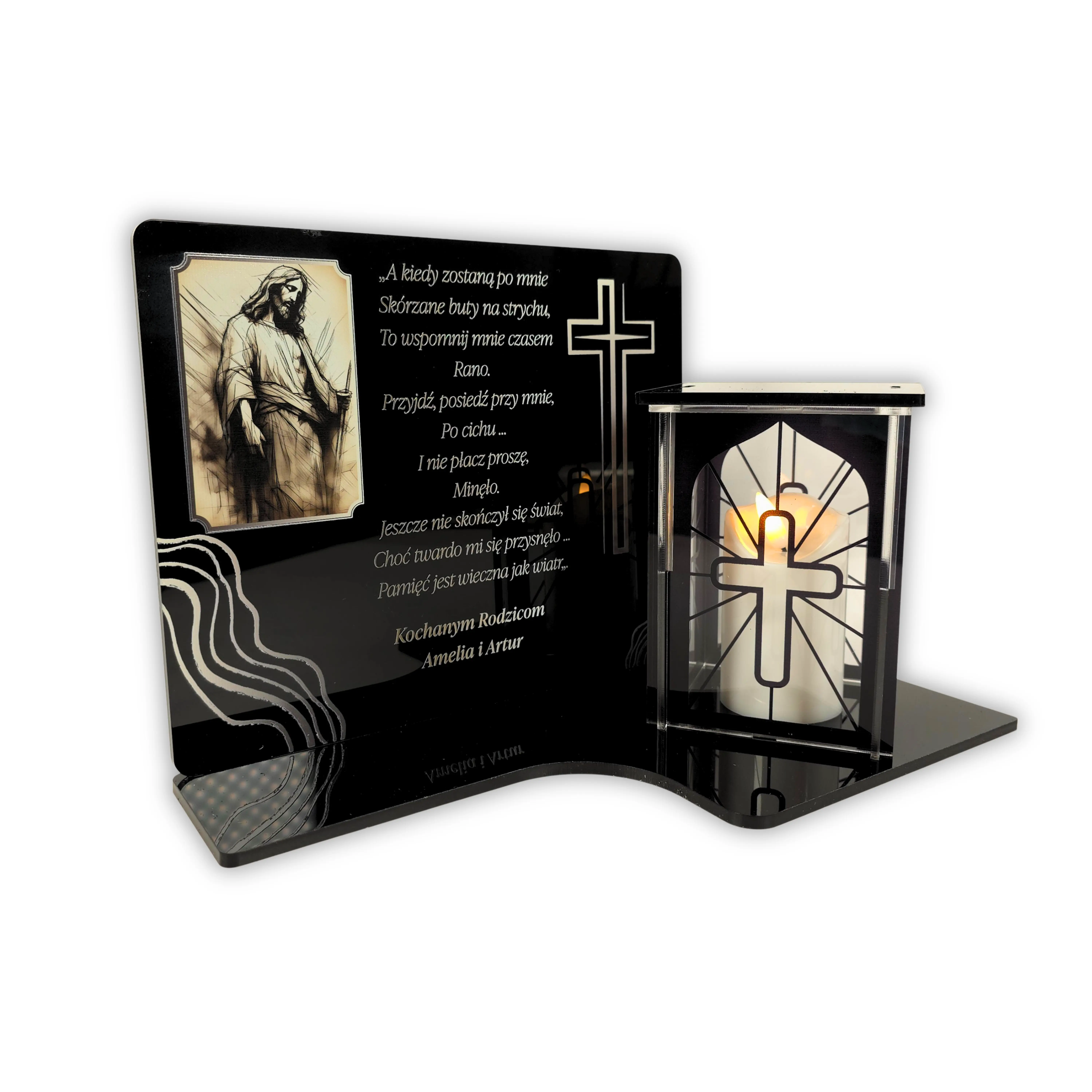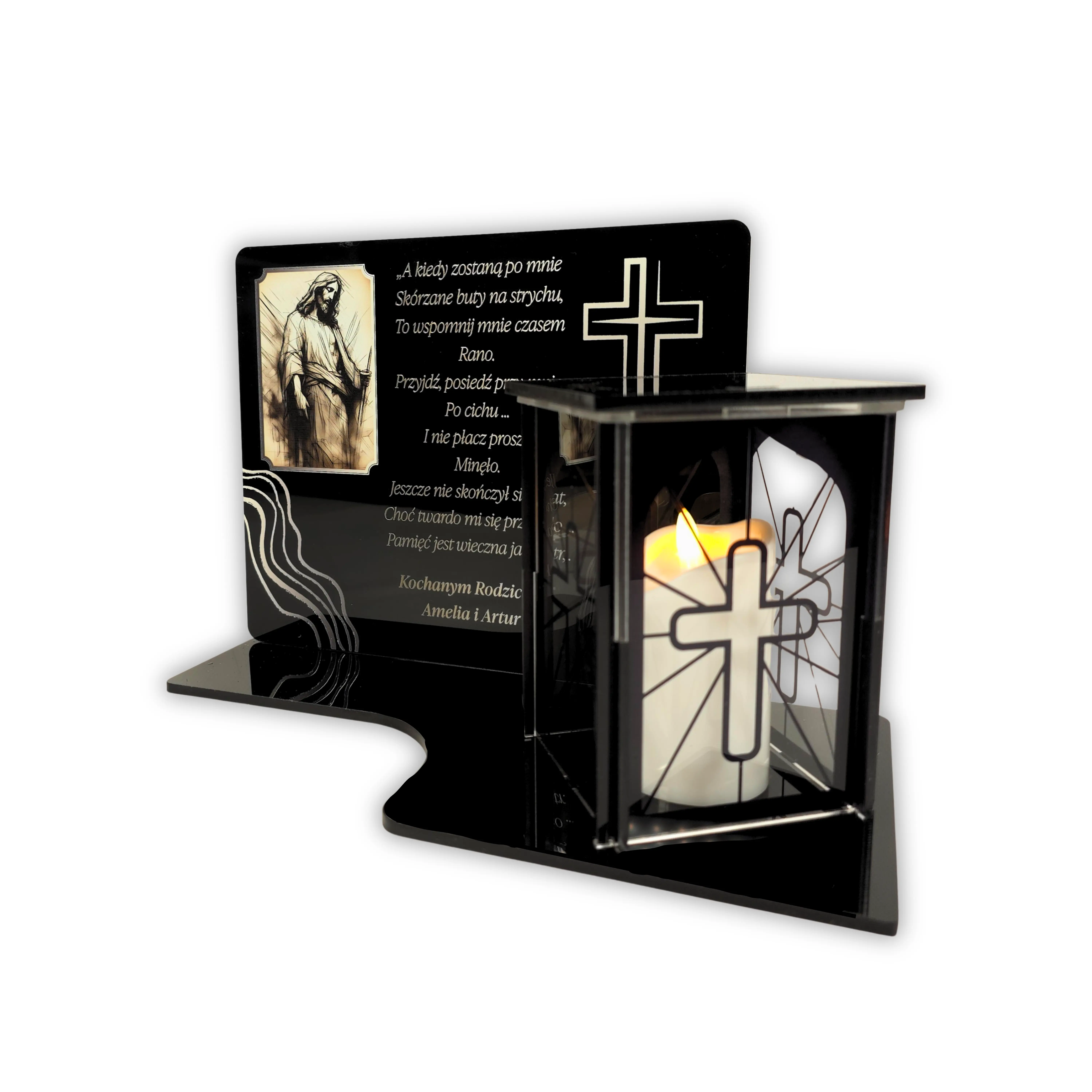 Podstawka z zniczem Personalizowana tablica na grób