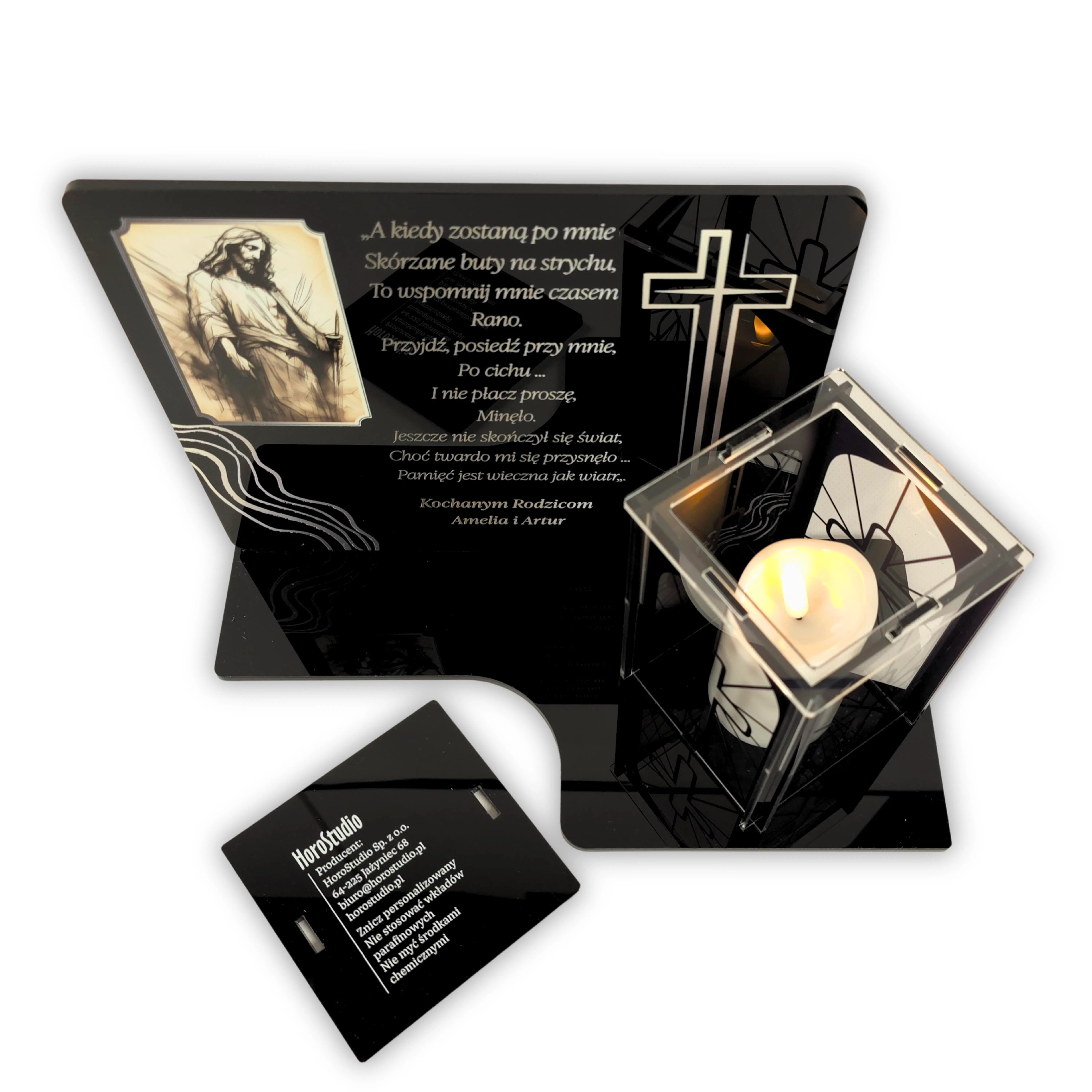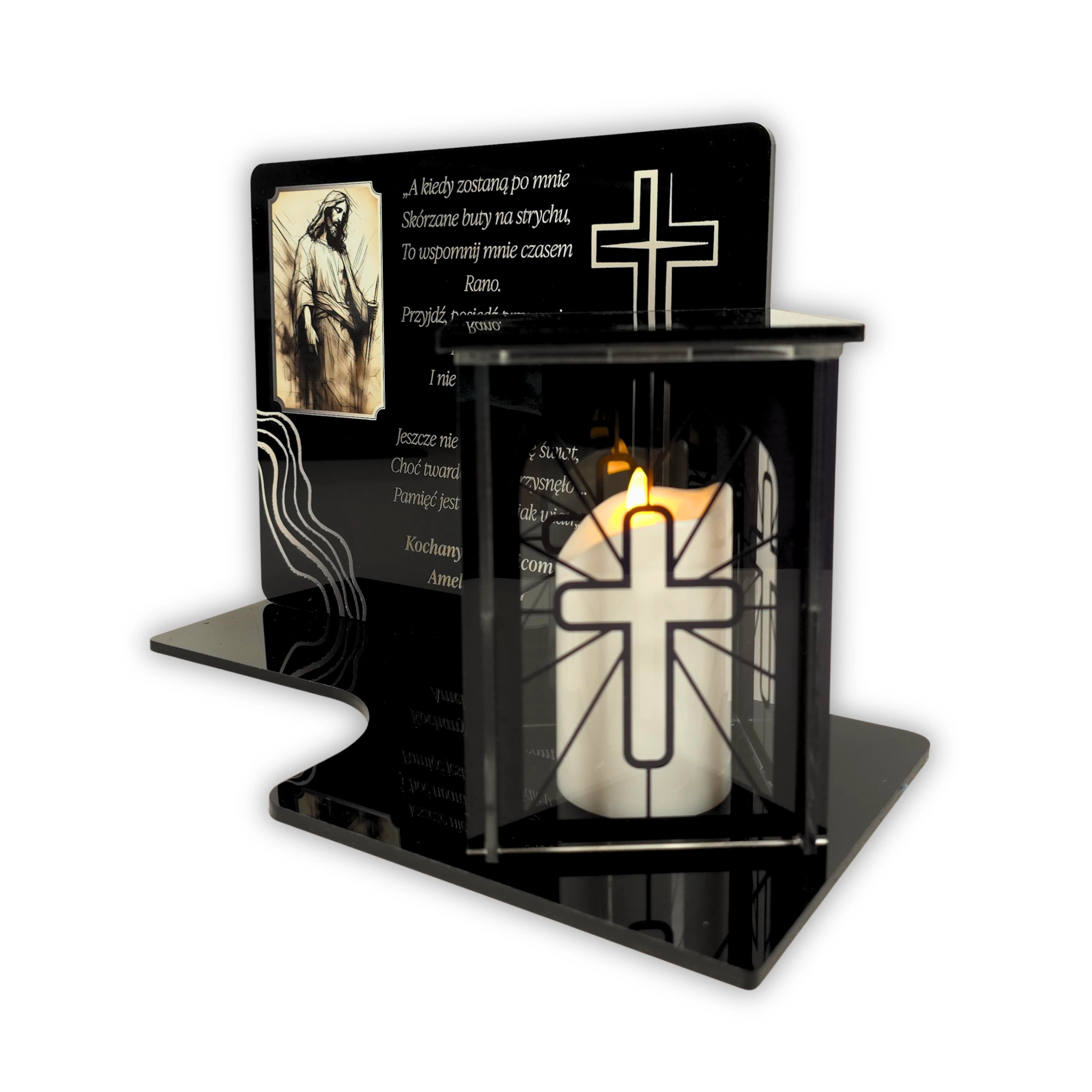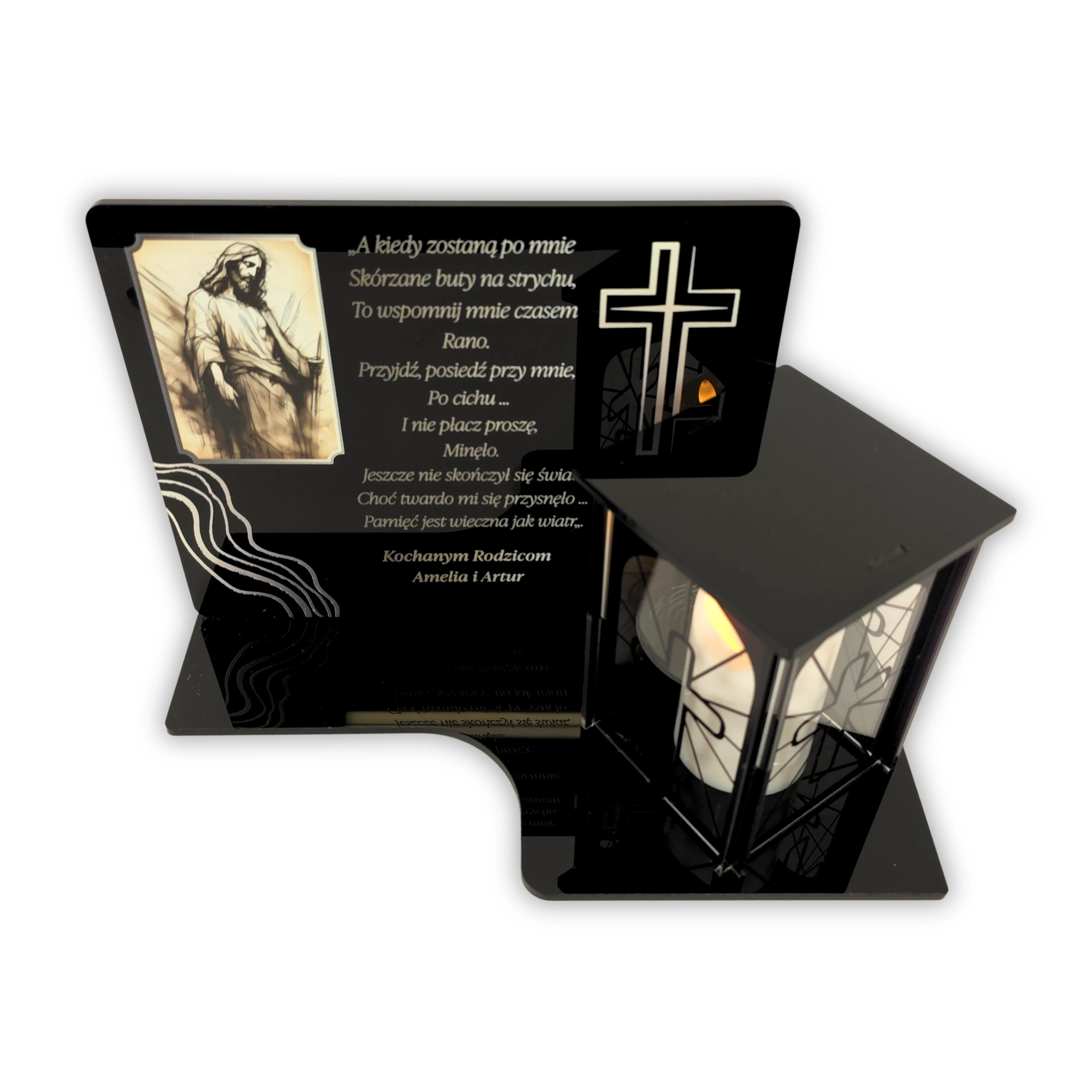 Podstawka z zniczem Personalizowana tablica na grób