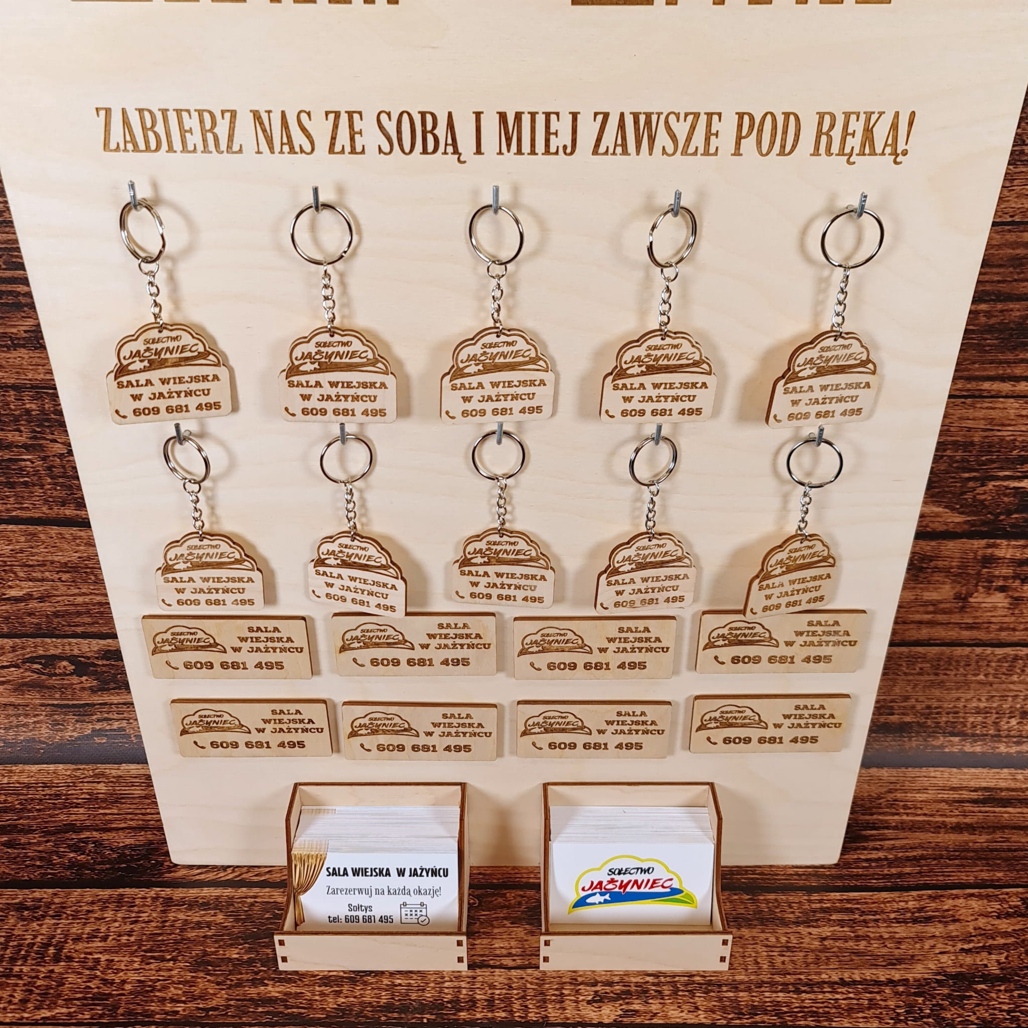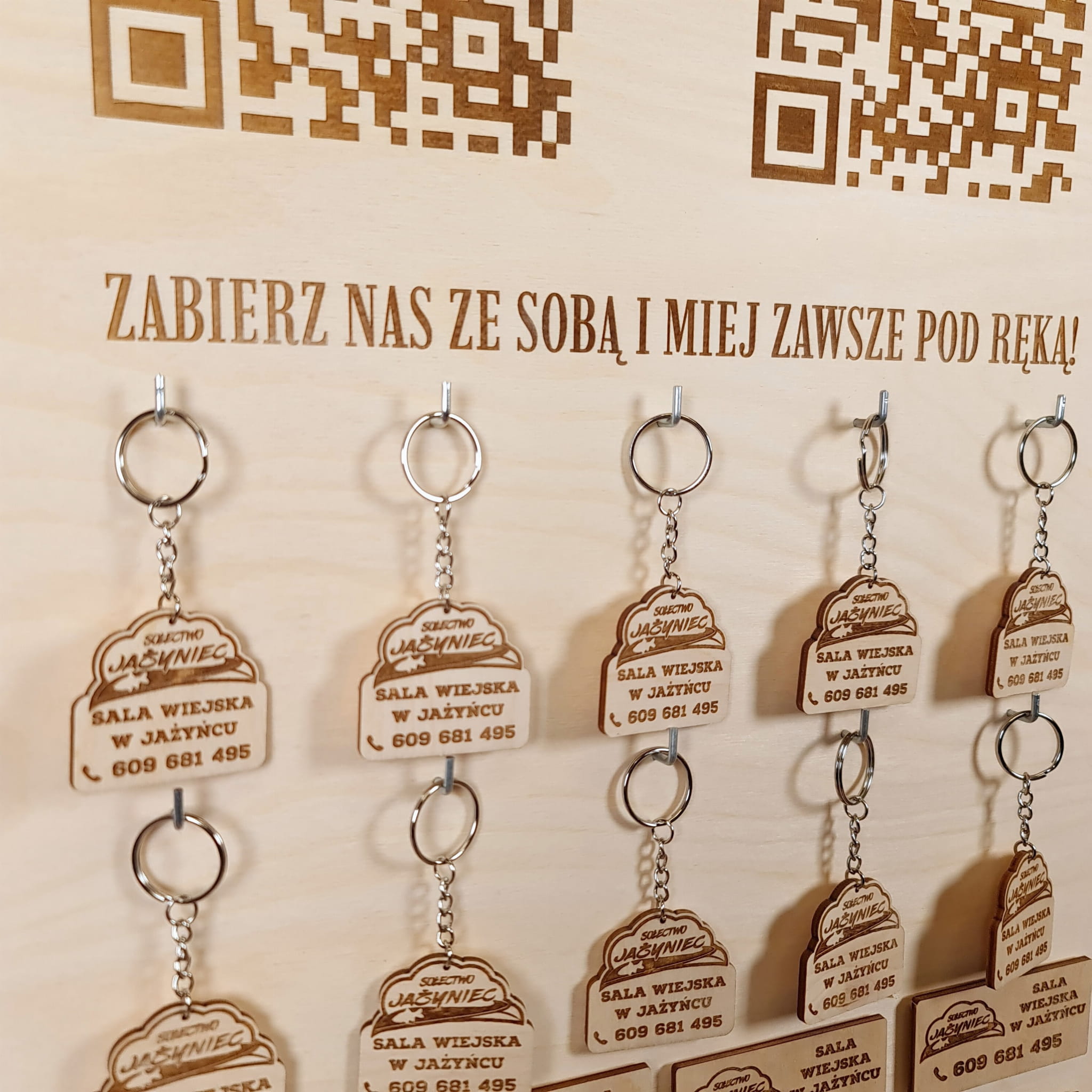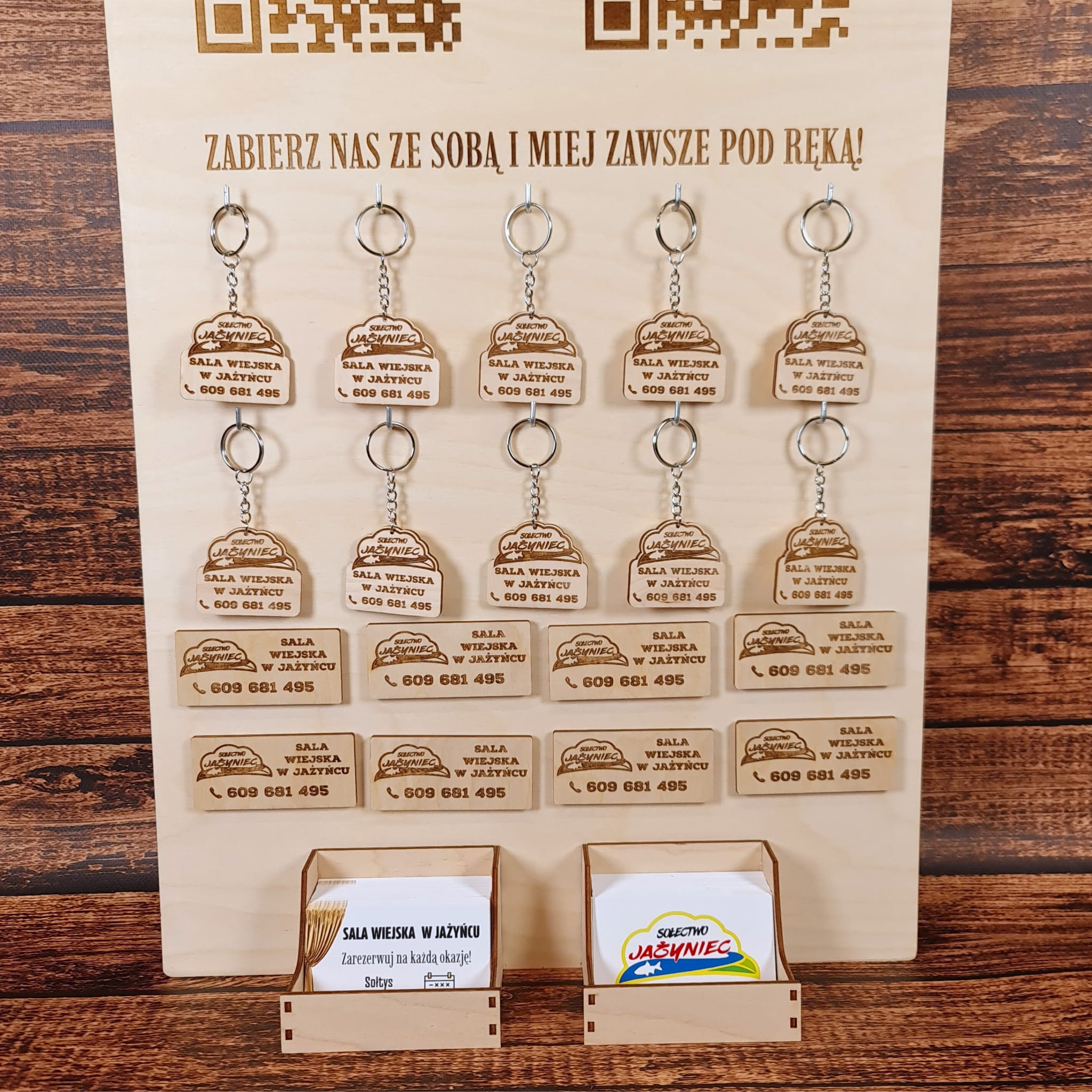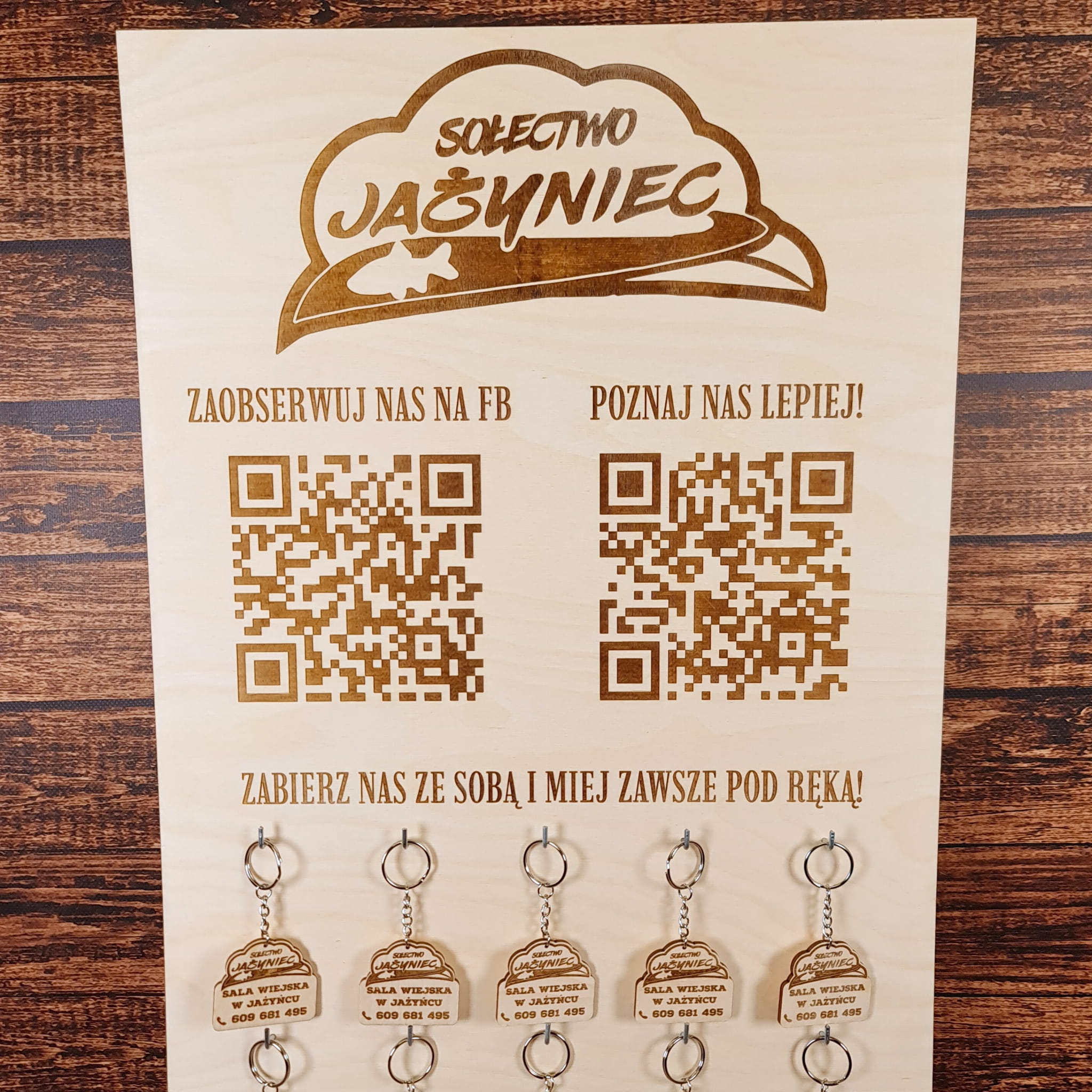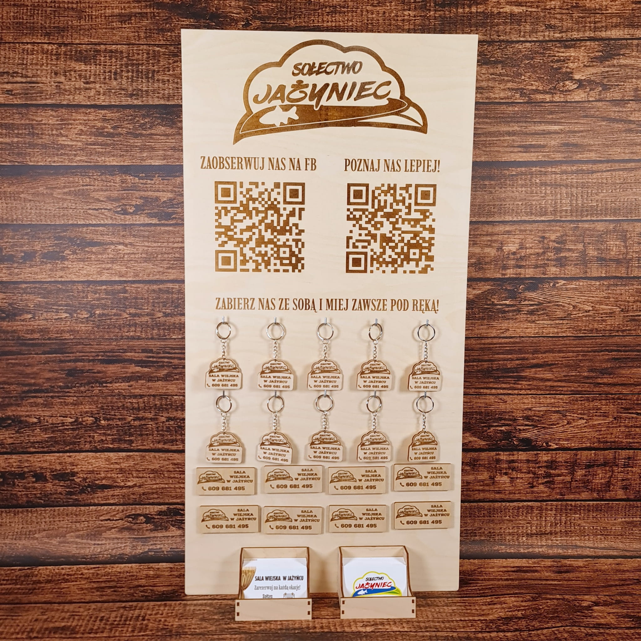 Tablica Social media z logo i kodami QR + 100 breloków 100 magnesów 1000 wizytówek