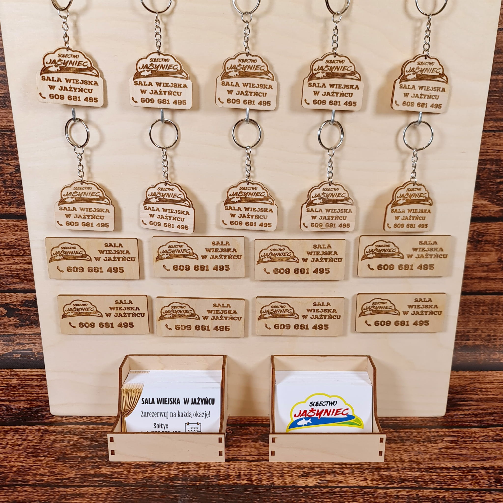 - Bogaty zestaw z brelokami, magnesami i wizytówkami