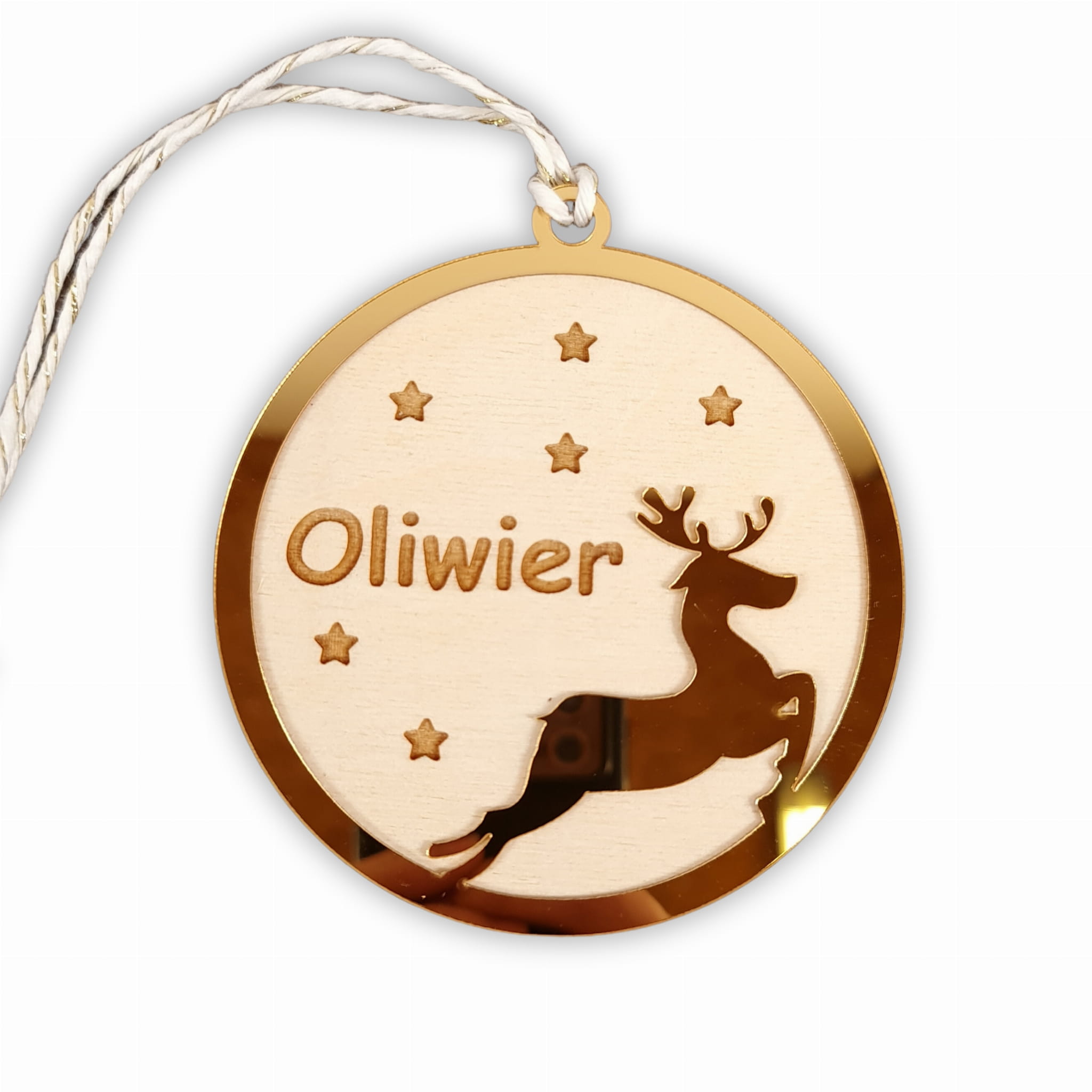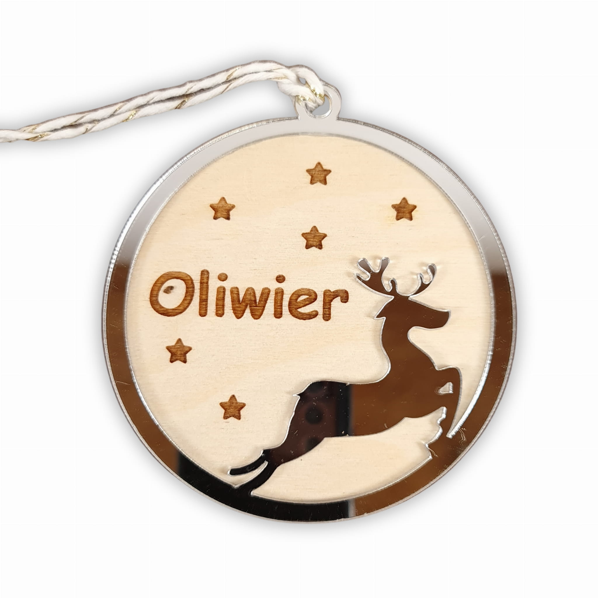 Bombka lustrzana z imieniem na choinkę - jelonek