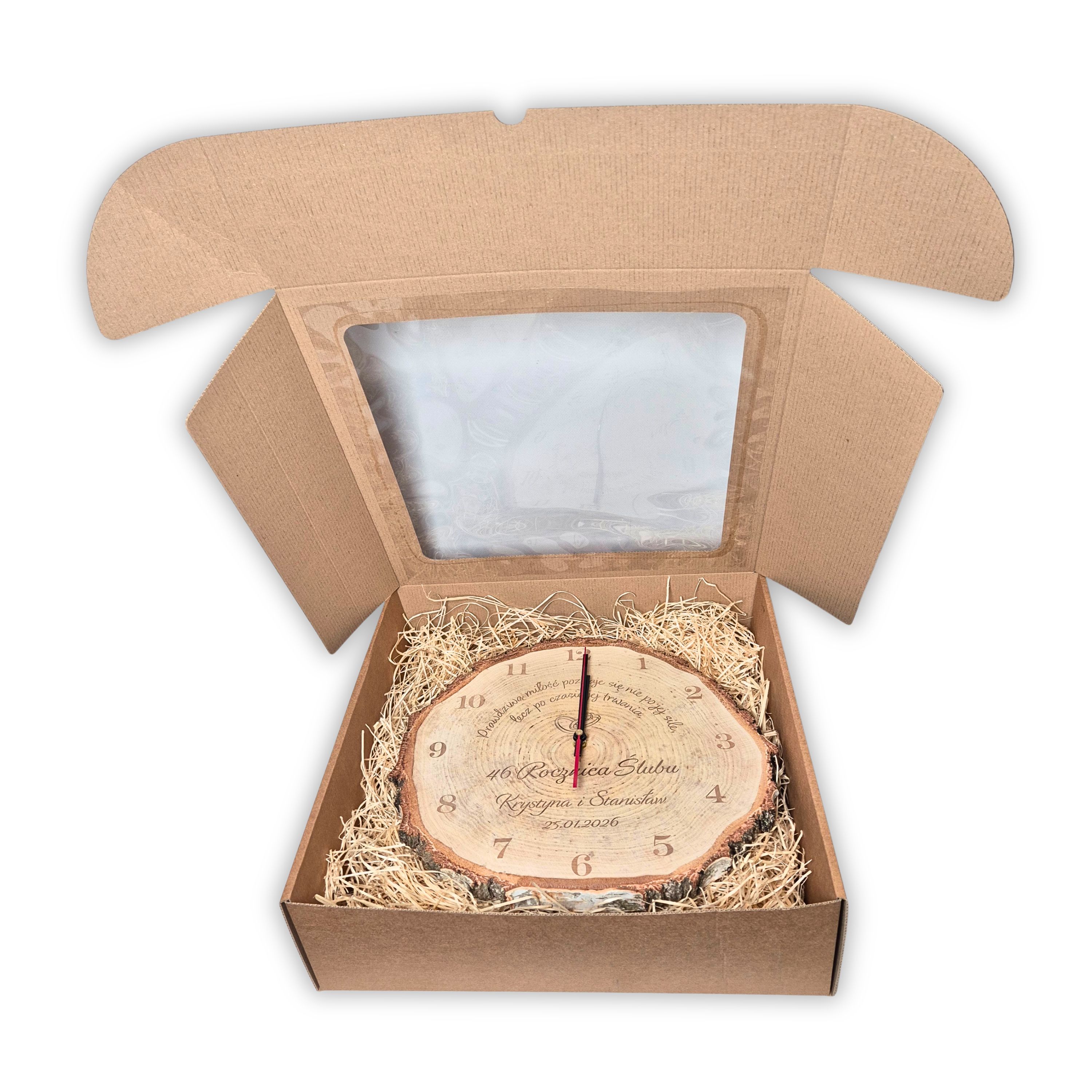 Dodatkowo istnieje opcja zapakowania zegara w pudełko prezentowe. Dzięki temu prezent jest już gotowy do wręczenia.