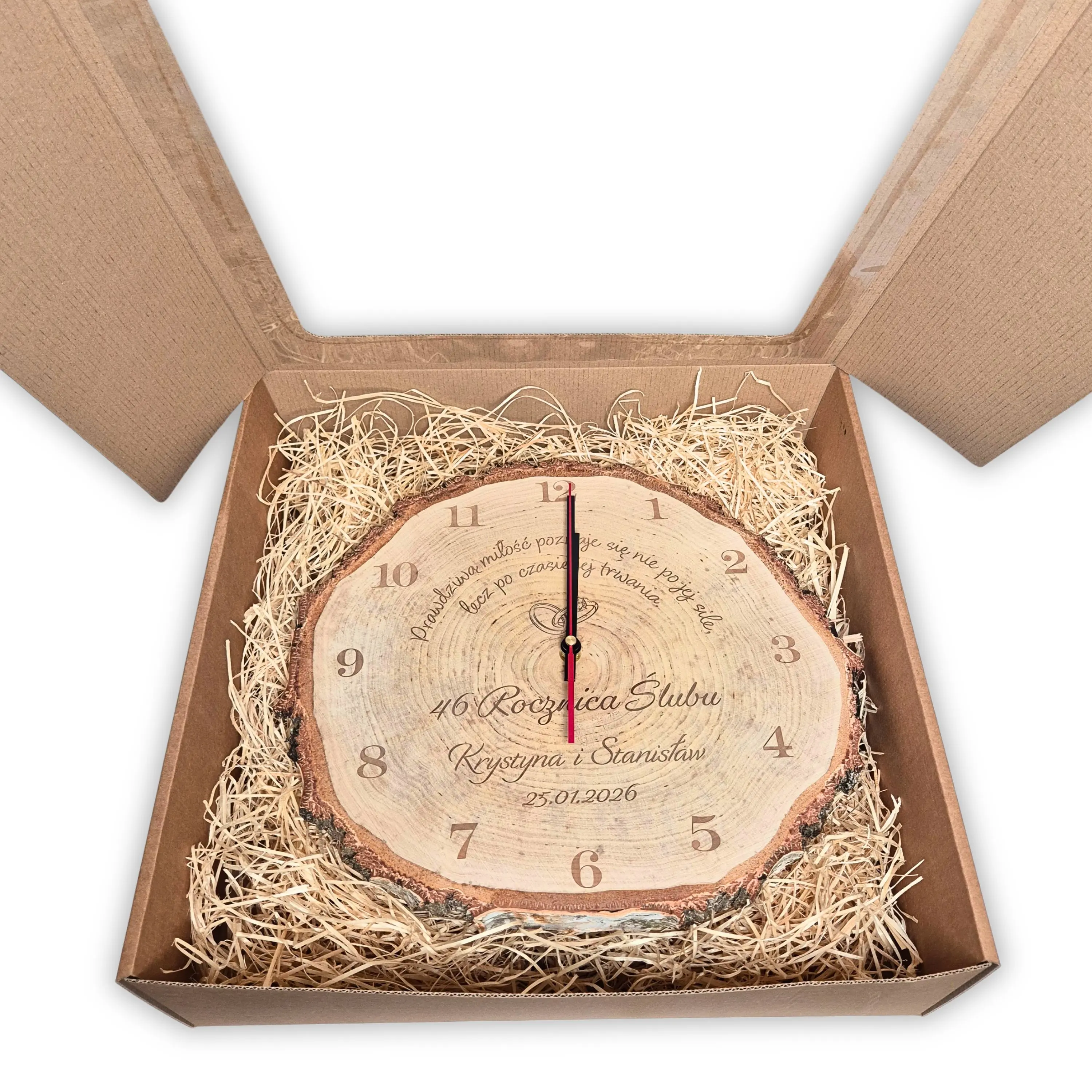 Drewniany zegar z grawerem Prezent na rocznicę ślubu