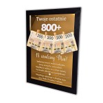 Ekskluzywna czarno złota ramka na pieniądze „Twoje ostatnie 800+”