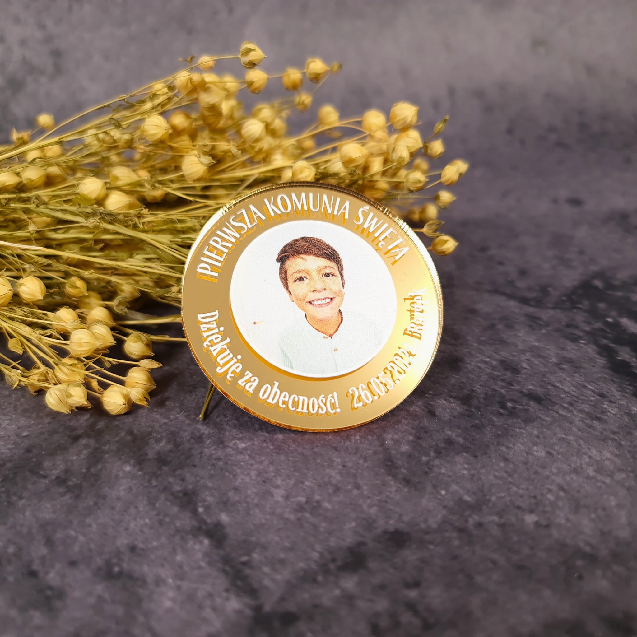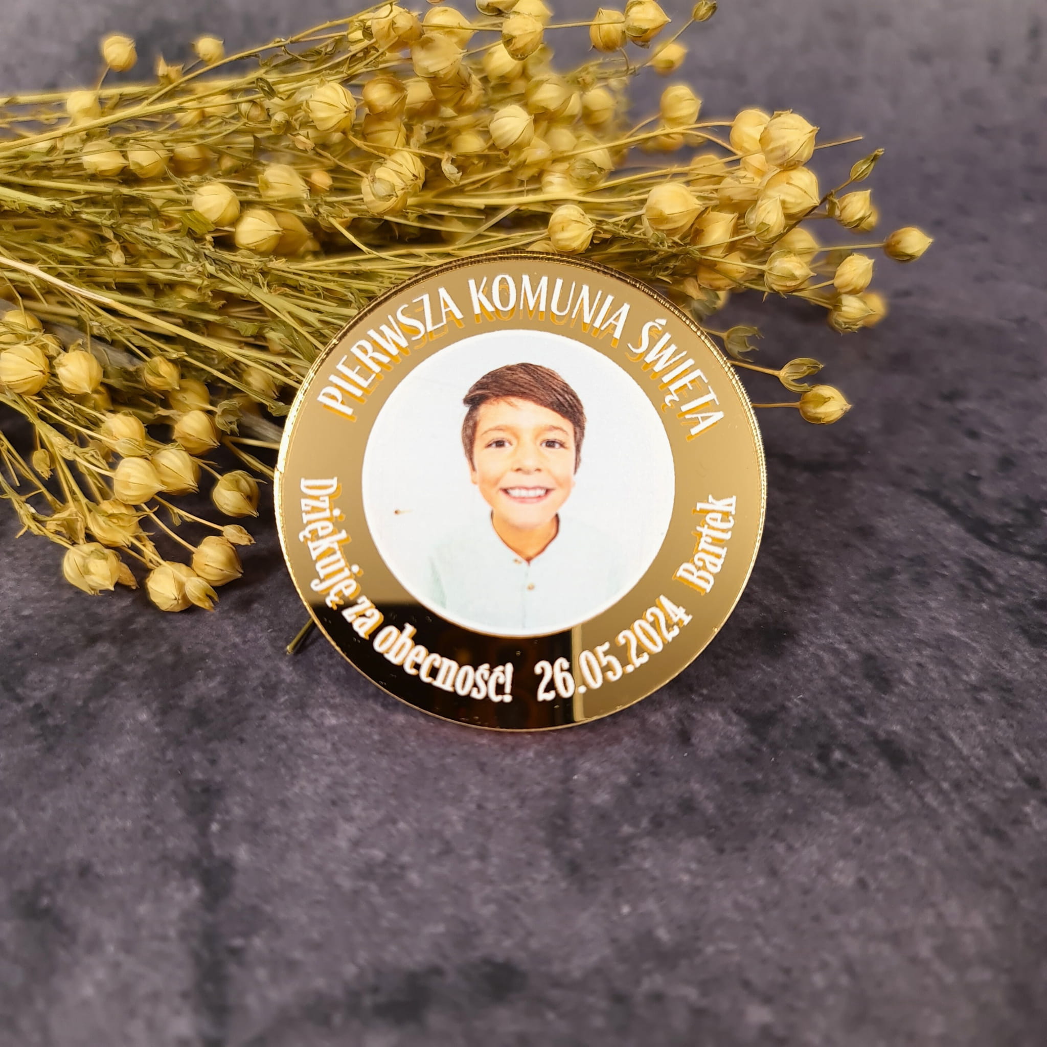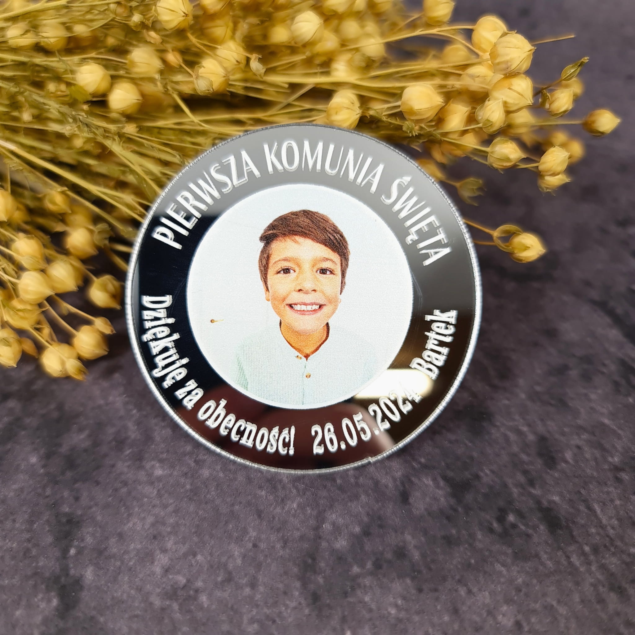 Lustrzany Magnes z zdjęciem - oryginalne podziękowania dla gości komunijnych