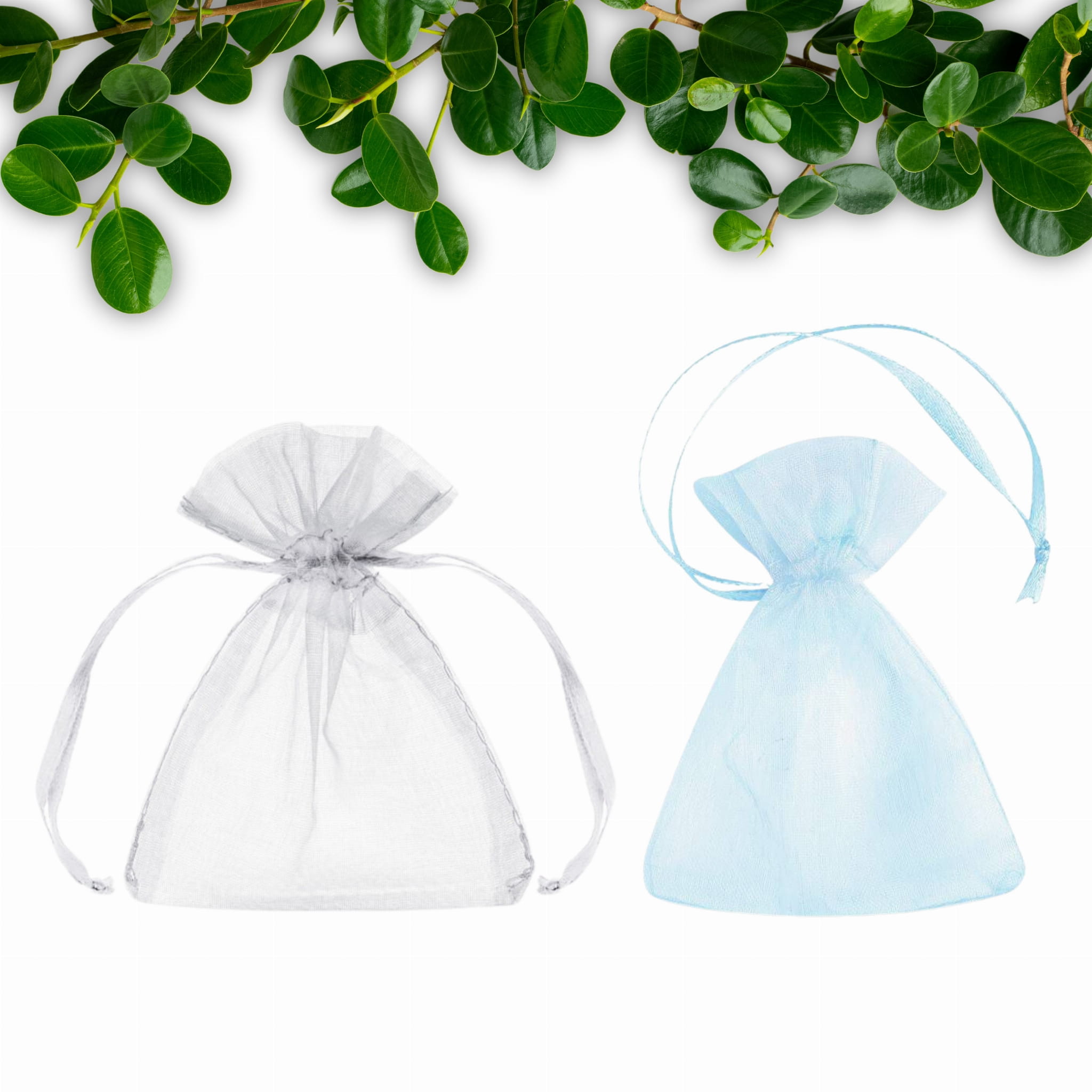 Oferujemy opcję magnesu z subtelnym woreczkiem z organzy o rozmiarze: 9 cm x 12 cm