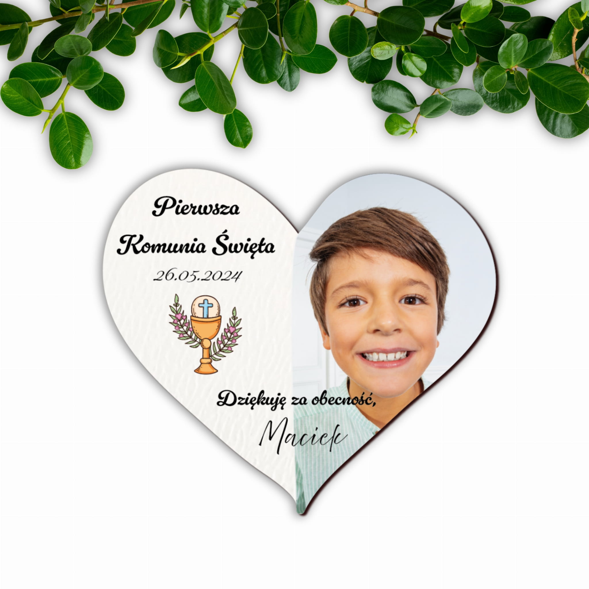 Magnes z zdjęciem serce - podziękowanie z okazji Komunii dla chłopca