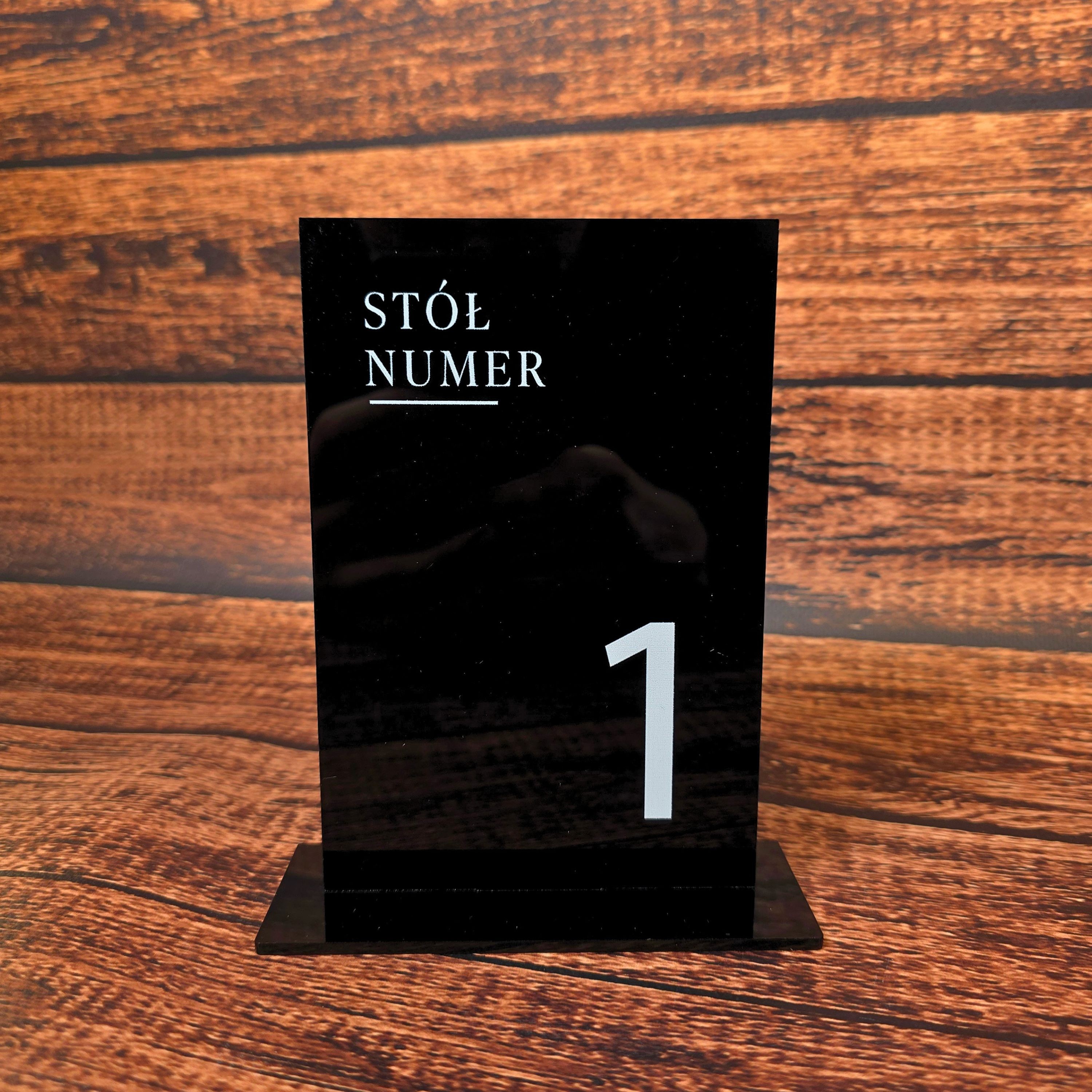Numerki na stół weselny - czarne tabliczki z białym nadrukiem
