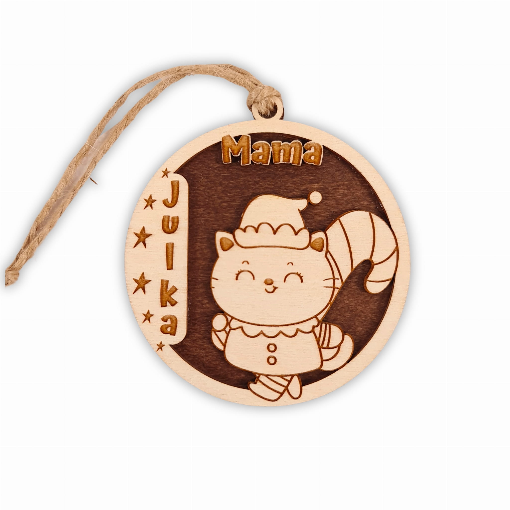 Bombka drewniana z imieniem na choinkę - mama kotek
