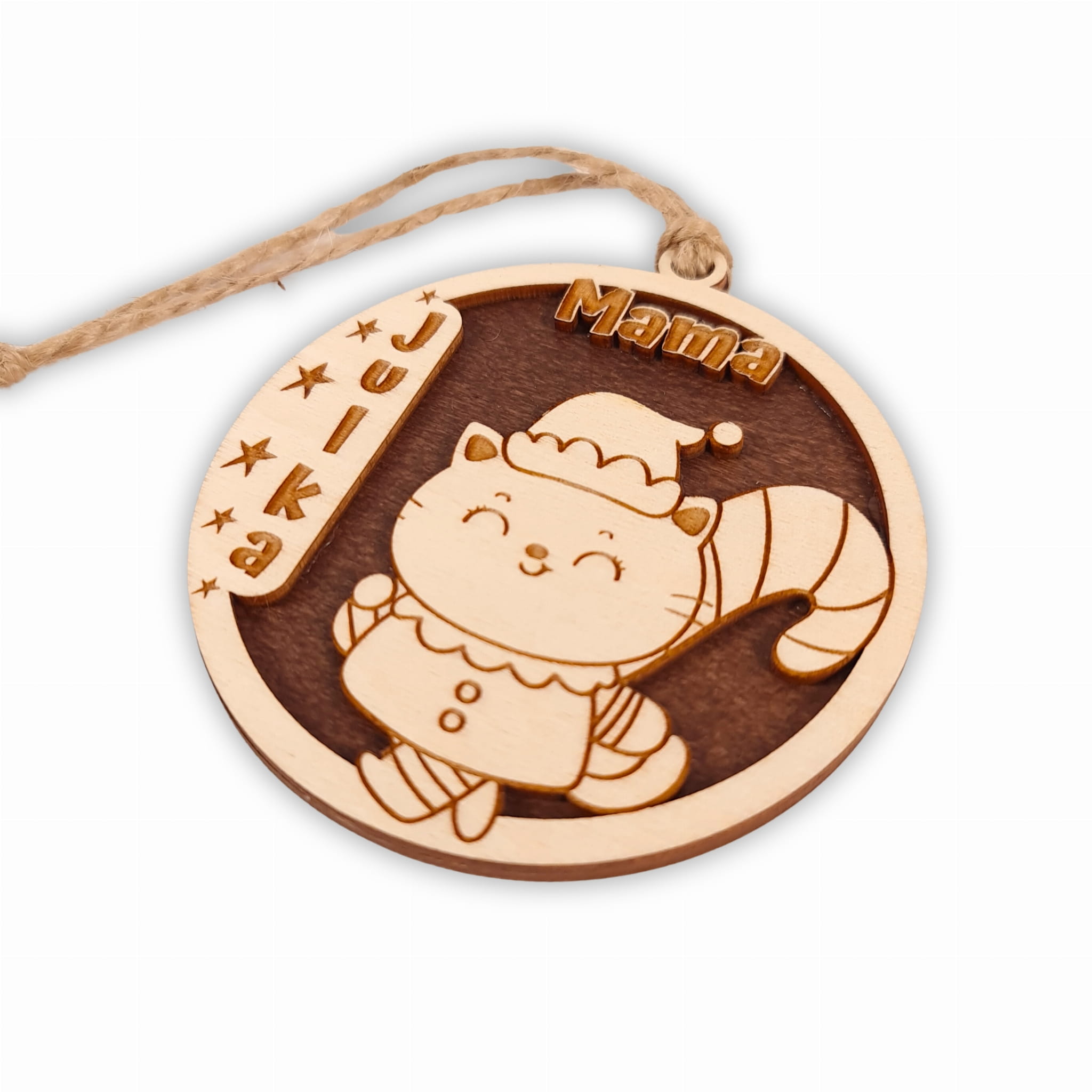 Wykonana jest z dwukolorowej sklejki i przedstawia mamę kotka. Jest to wersja specjalnie dla mamy, ponieważ oprócz imienia posiada również podkreślenie jakim jest napis "mama"