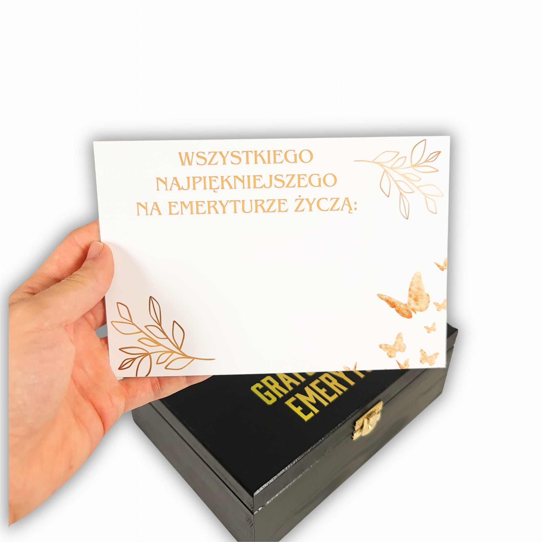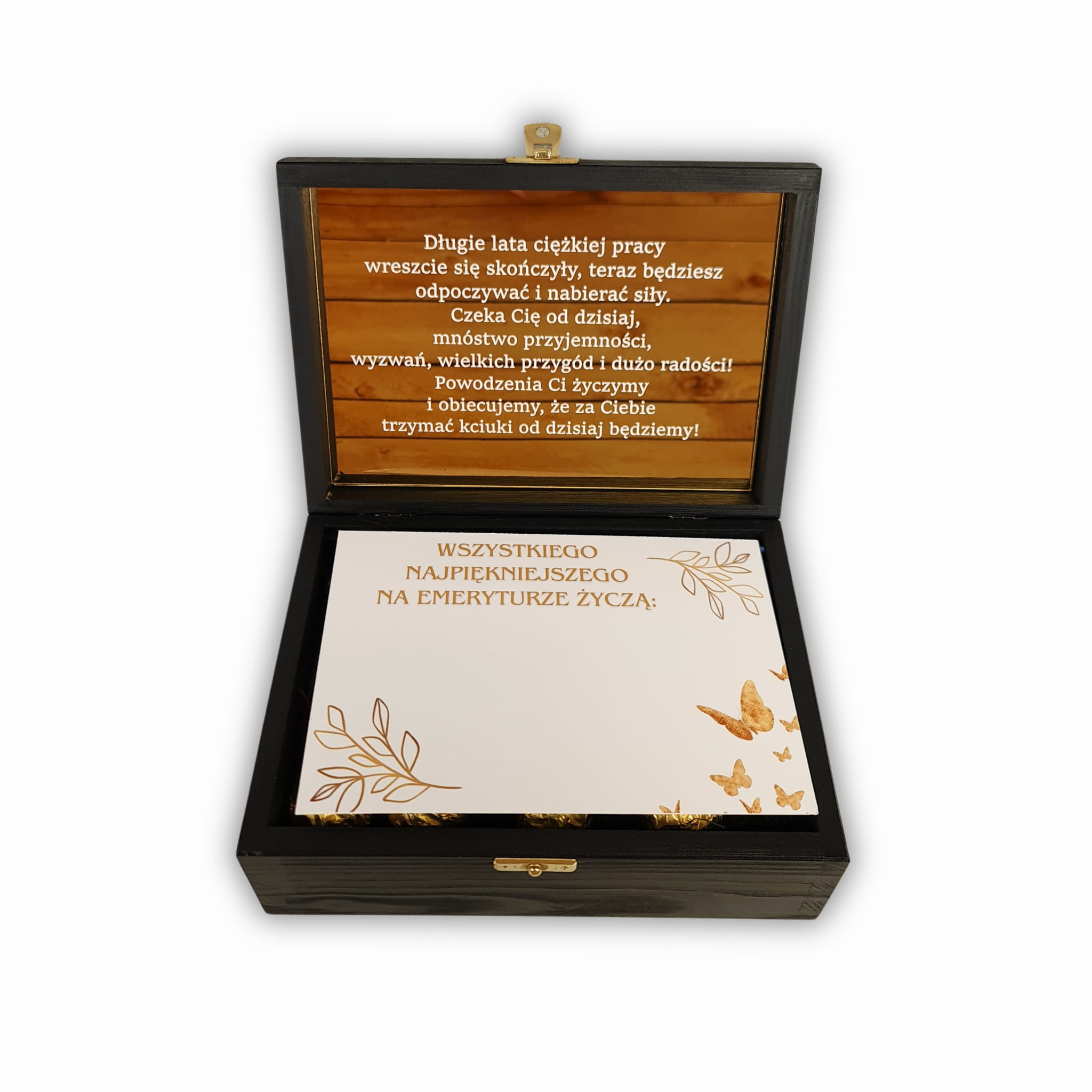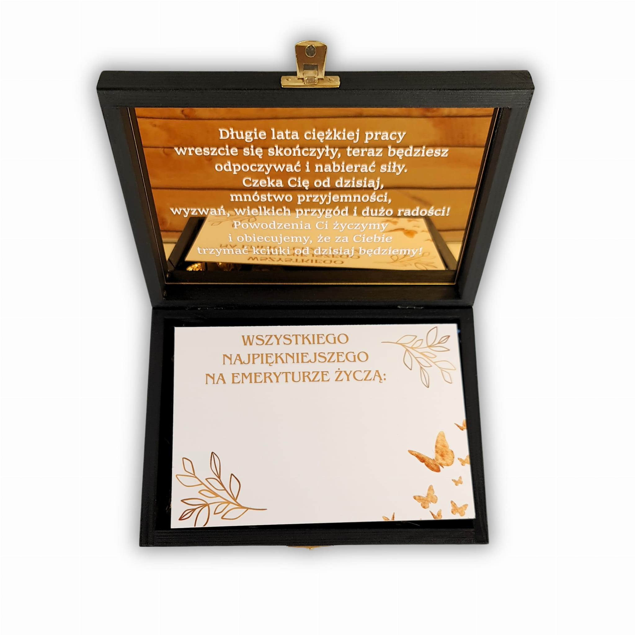 Skrzynka drewniana z życzeniami - Prezent dla emeryta
