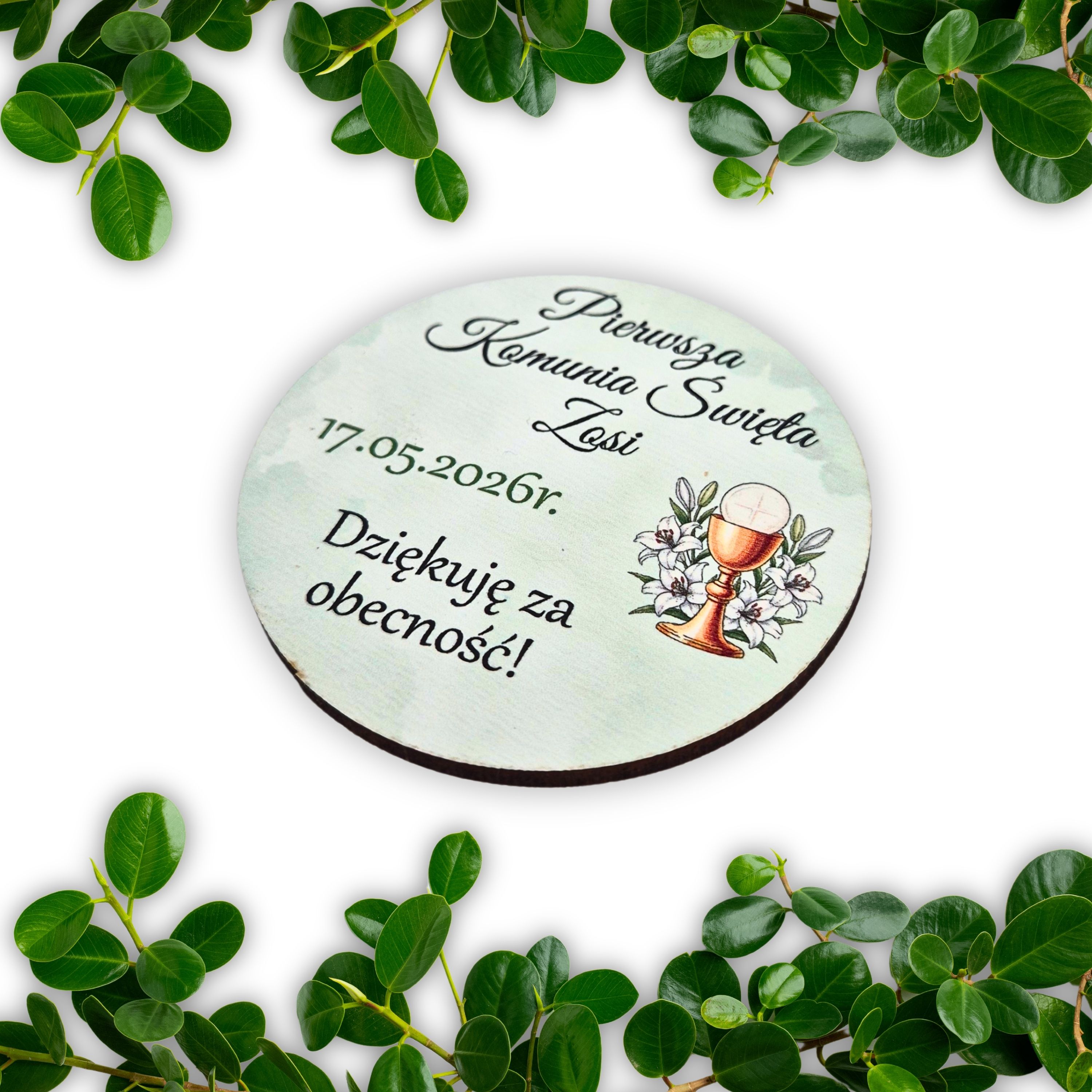 Drewniany magnes - Personalizowane podziękowanie na Komunię dla gości
