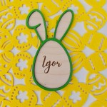 Słodkie jajko z uszkami i imieniem dziecka, czy też bliskiej Ci osoby.
