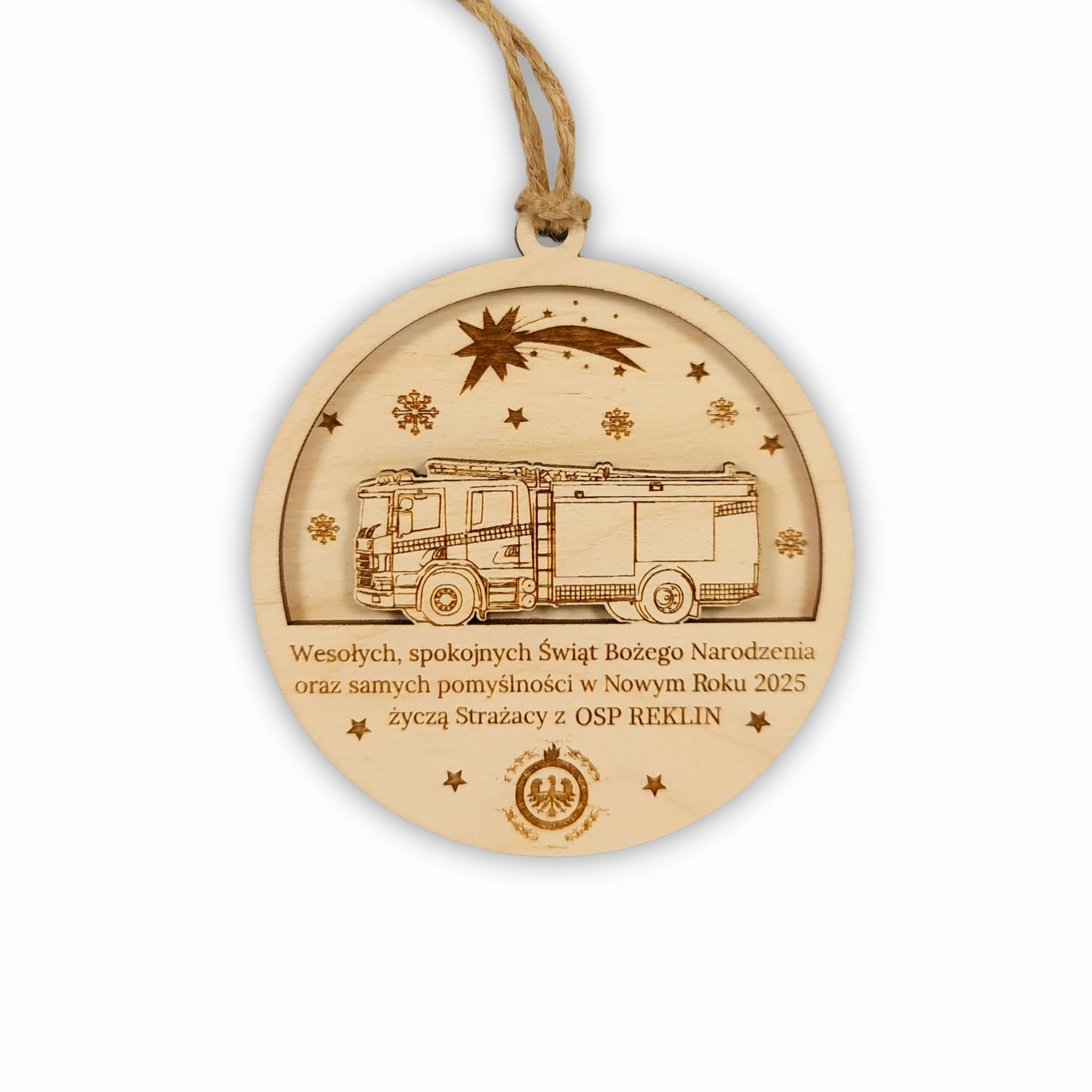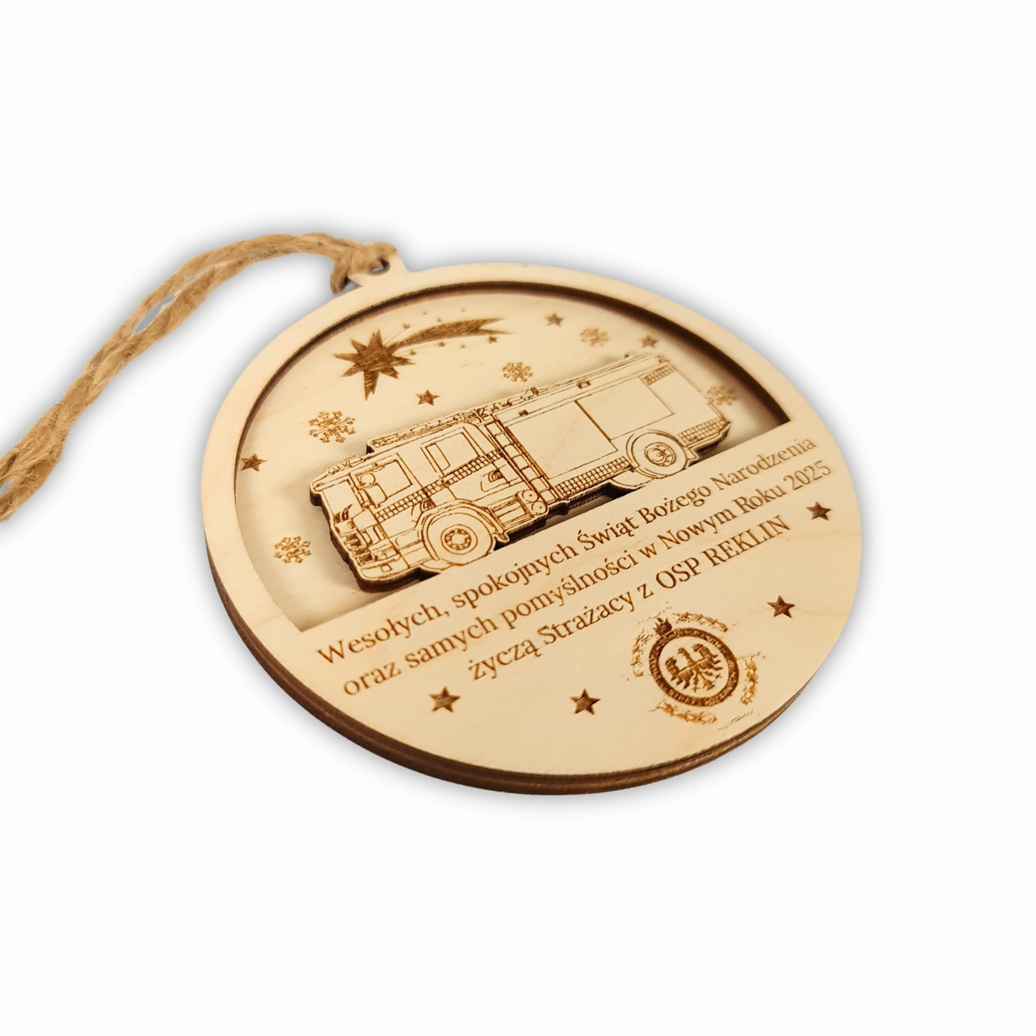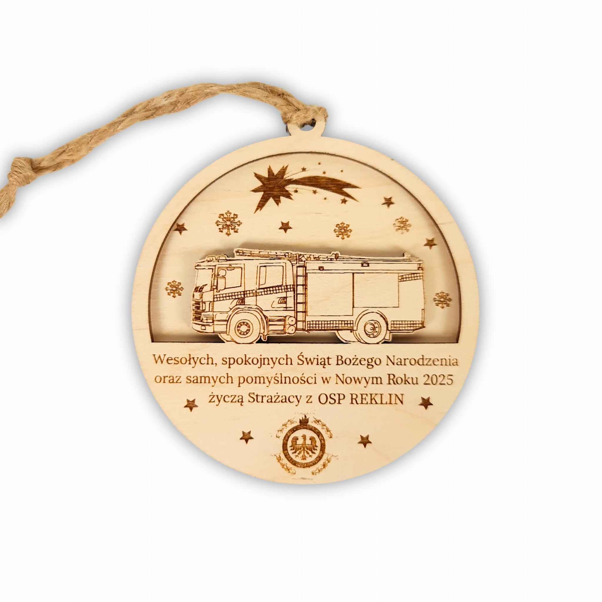 Personalizowana zawieszka z wozem strażackim oraz krótkimi życzeniami sprawdzi się w roli podziękowania dla sponsorów jednostki lub jako świąteczny prezent dla druhów i druhen jednostki.