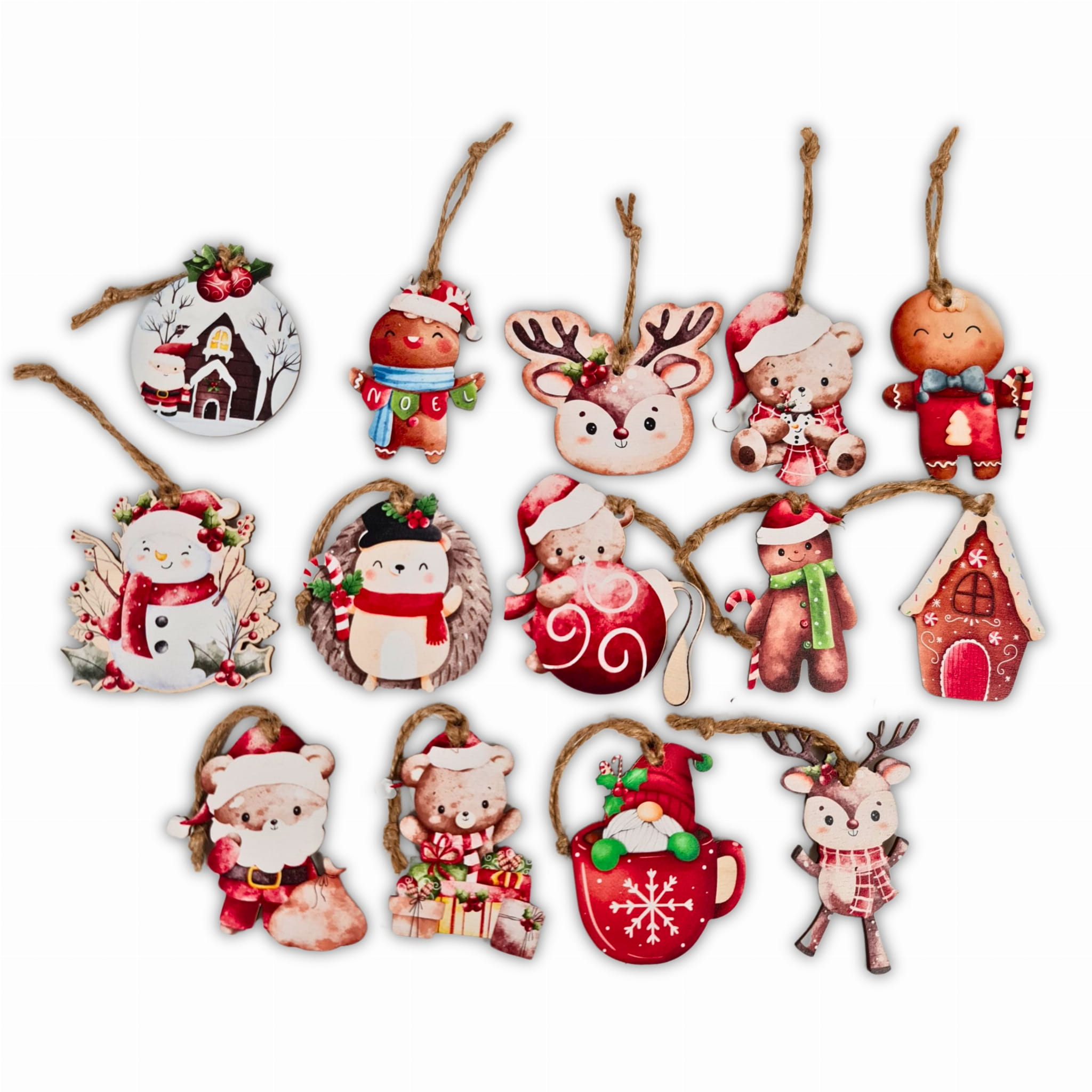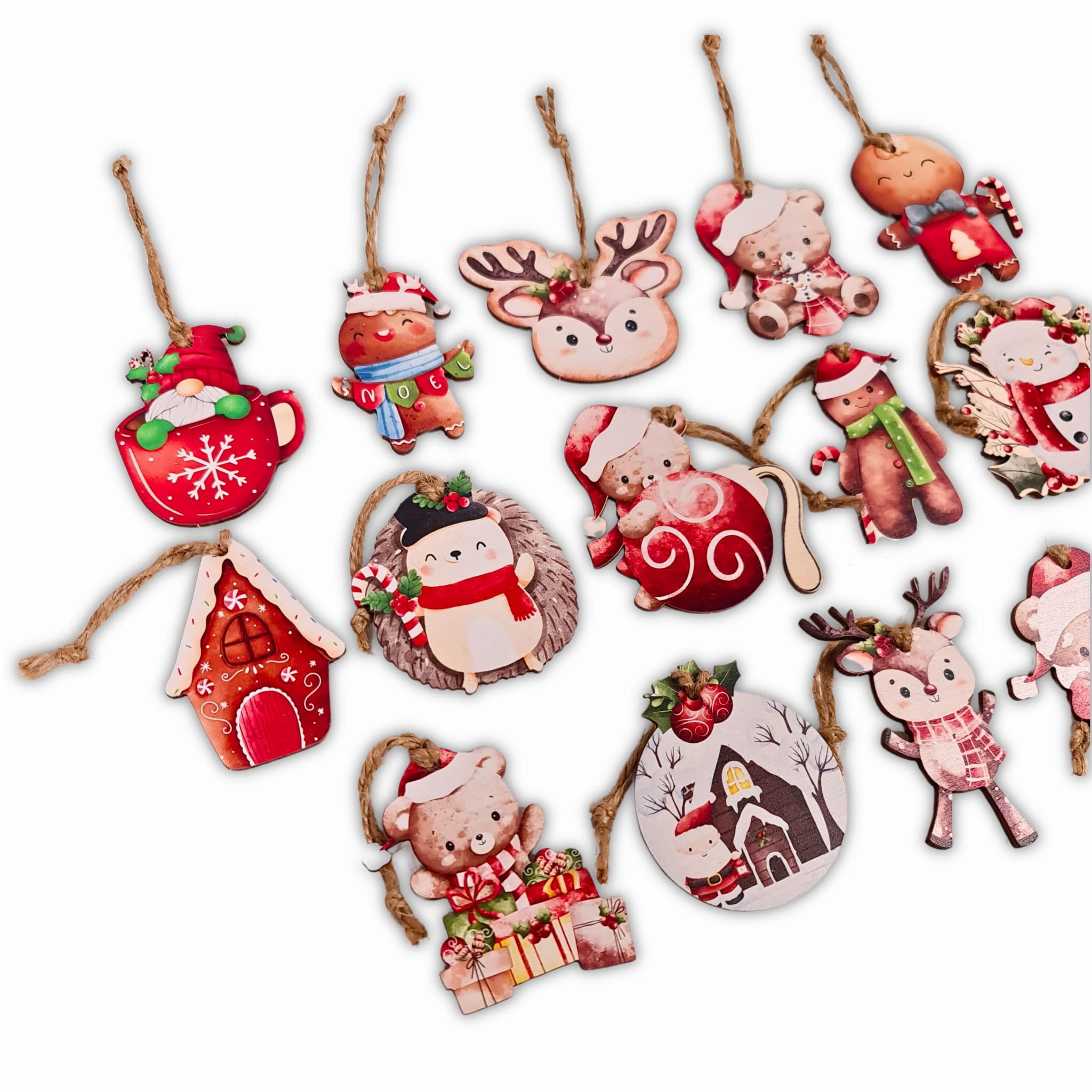 Zawieszki bombki świąteczne 14szt. drewniane zawieszki ozdoby na choinkę Różne wzory