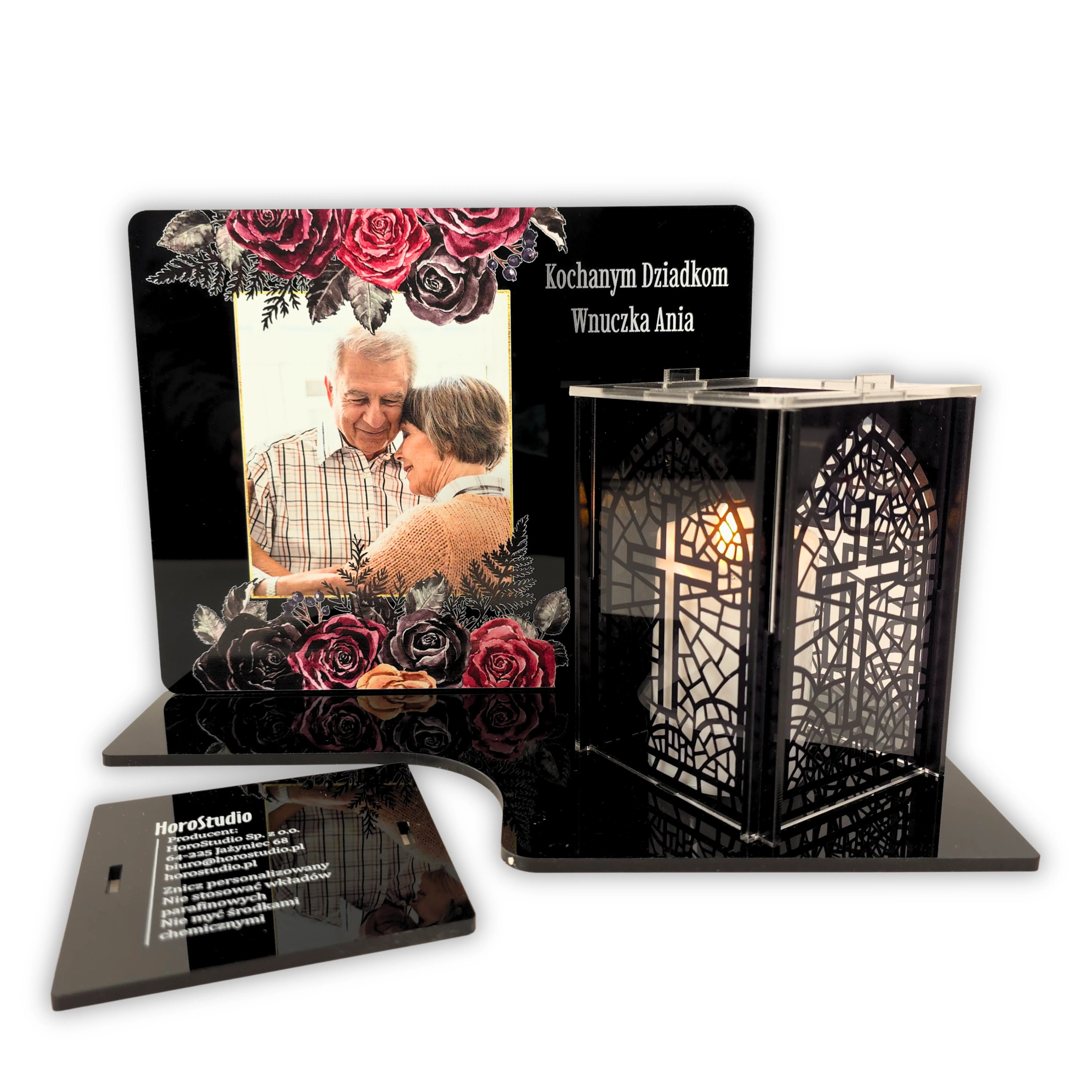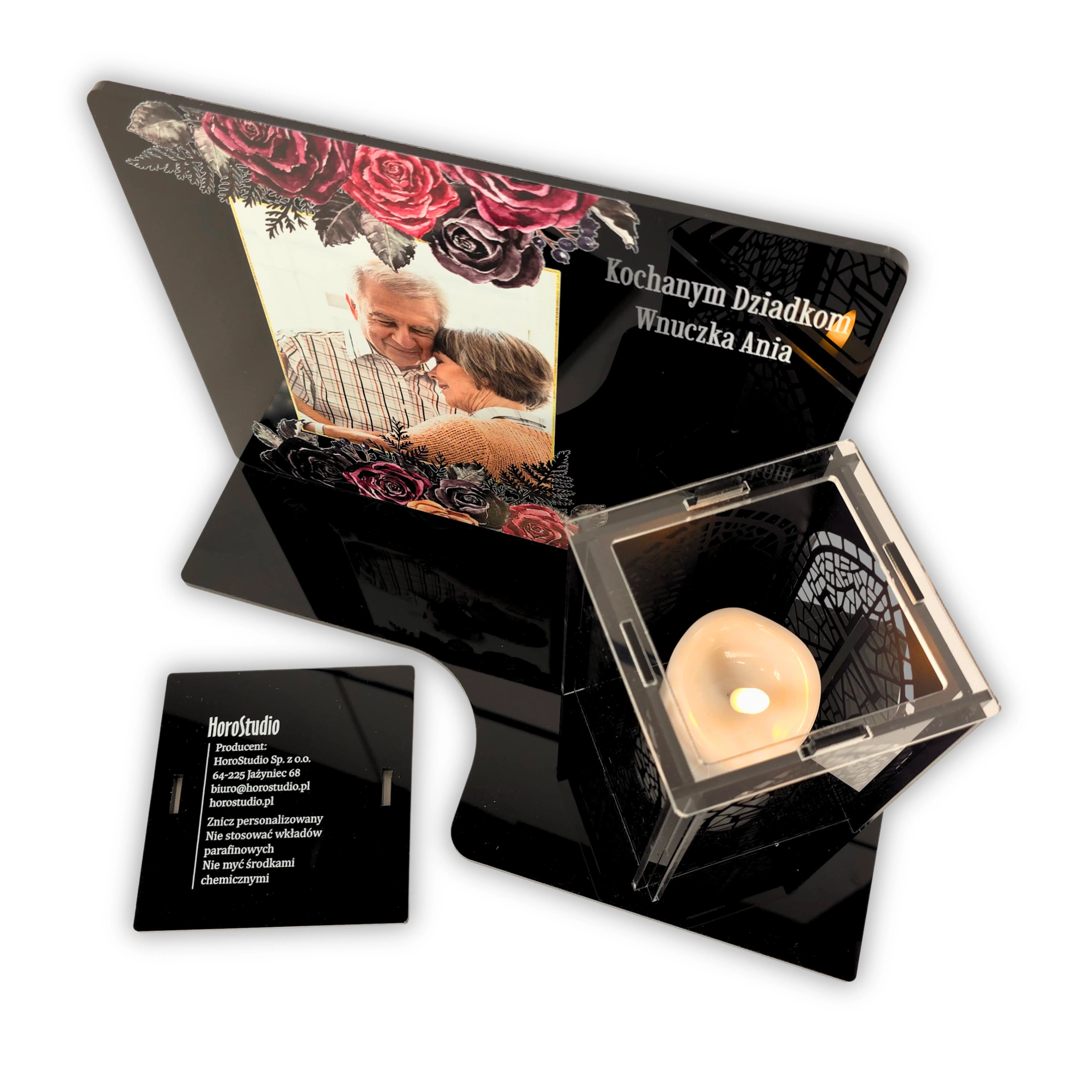 Spersonalizuj jak tylko chcesz. Tak wyjątkową podstawką z zniczem możesz uhonorować dowolnie zmarłą bliską osobę. Wkomponuje się w każdą nagrobkową kompozycję. Nadrukowane zdjęcie doda powagi i przypomni wspomnienia u odwiedzających. Piękny wierszyk wywoła refleksje a dedykacja z podpisem będzie żywym świadectwem pamięci.