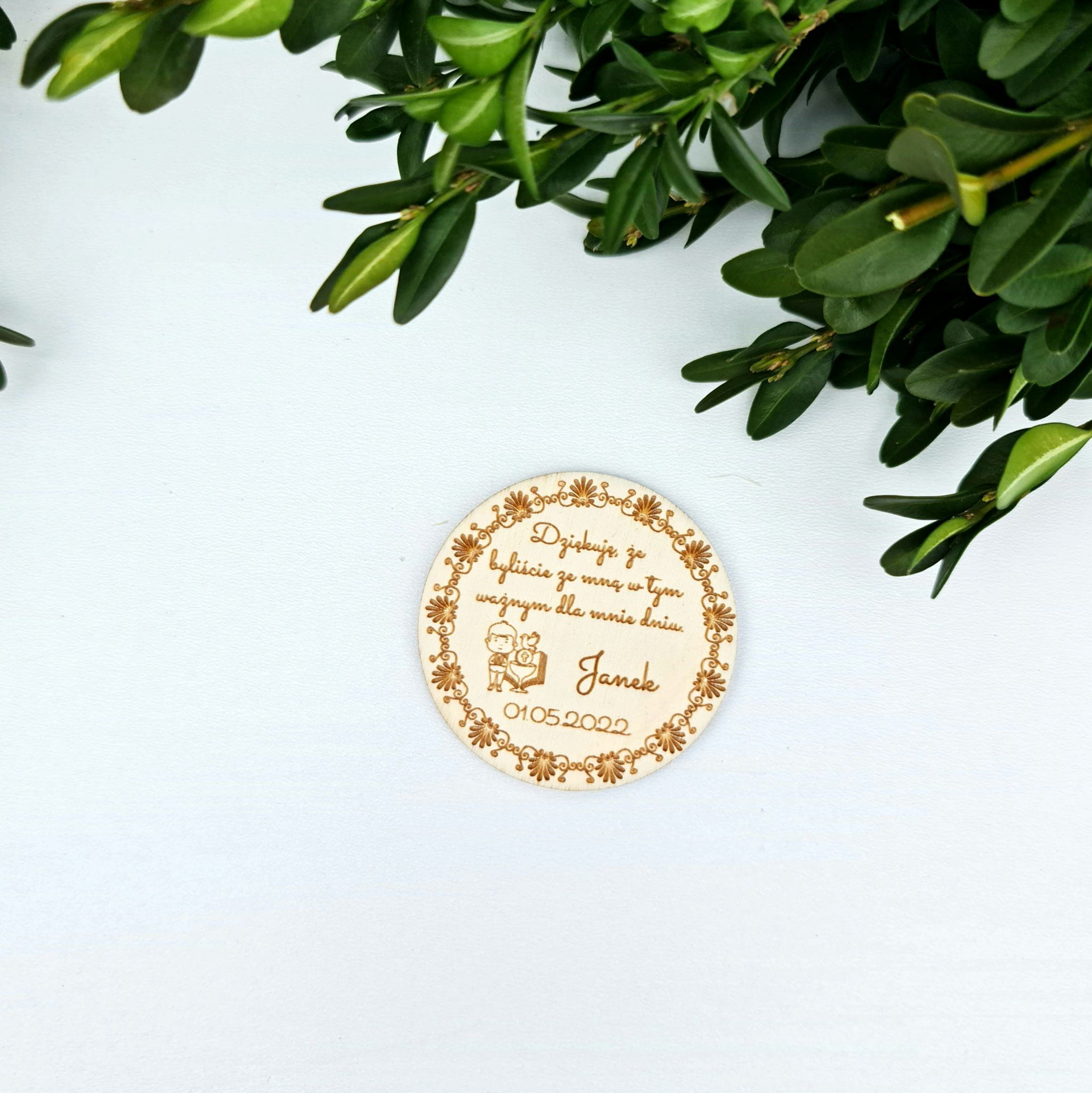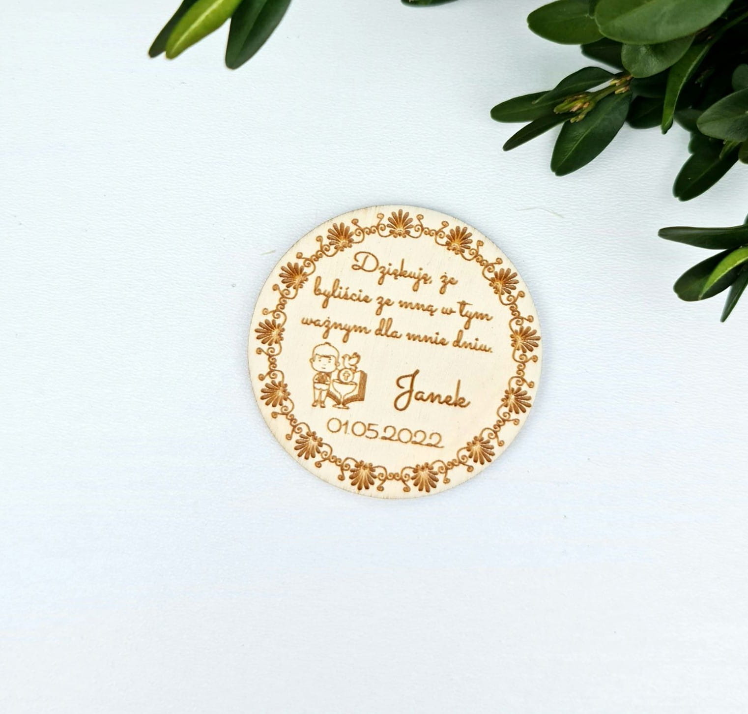 Podziękowania dla gości, za obecność podczas tak ważnej uroczystości, stwarzają jeszcze lepszą atmosferę w tym dniu. Poza tym taki gadżet zostaje bardzo unikatową pamiątką dla gości oraz świetnym upominkiem. Drewniany magnes z personalizowanym tekstem będzie bardzo oryginalnym podziękowaniem.