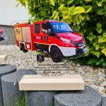 Statuetka strażacka z zdjęciem wozu ratowniczo-gaśniczego