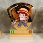 Statuetka dla najmłodszego zawodnika to wyjątkowa pamiątka, która uhonoruje najmłodszych pasjonatów wędkarstwa. Wykonana z wysokiej jakości złotego lustra PMMA, zapewnia efektowny połysk i elegancki wygląd. Całość osadzona jest na stabilnej podstawie z drewna bukowego, co nadaje nagrodzie prestiżowego charakteru.
