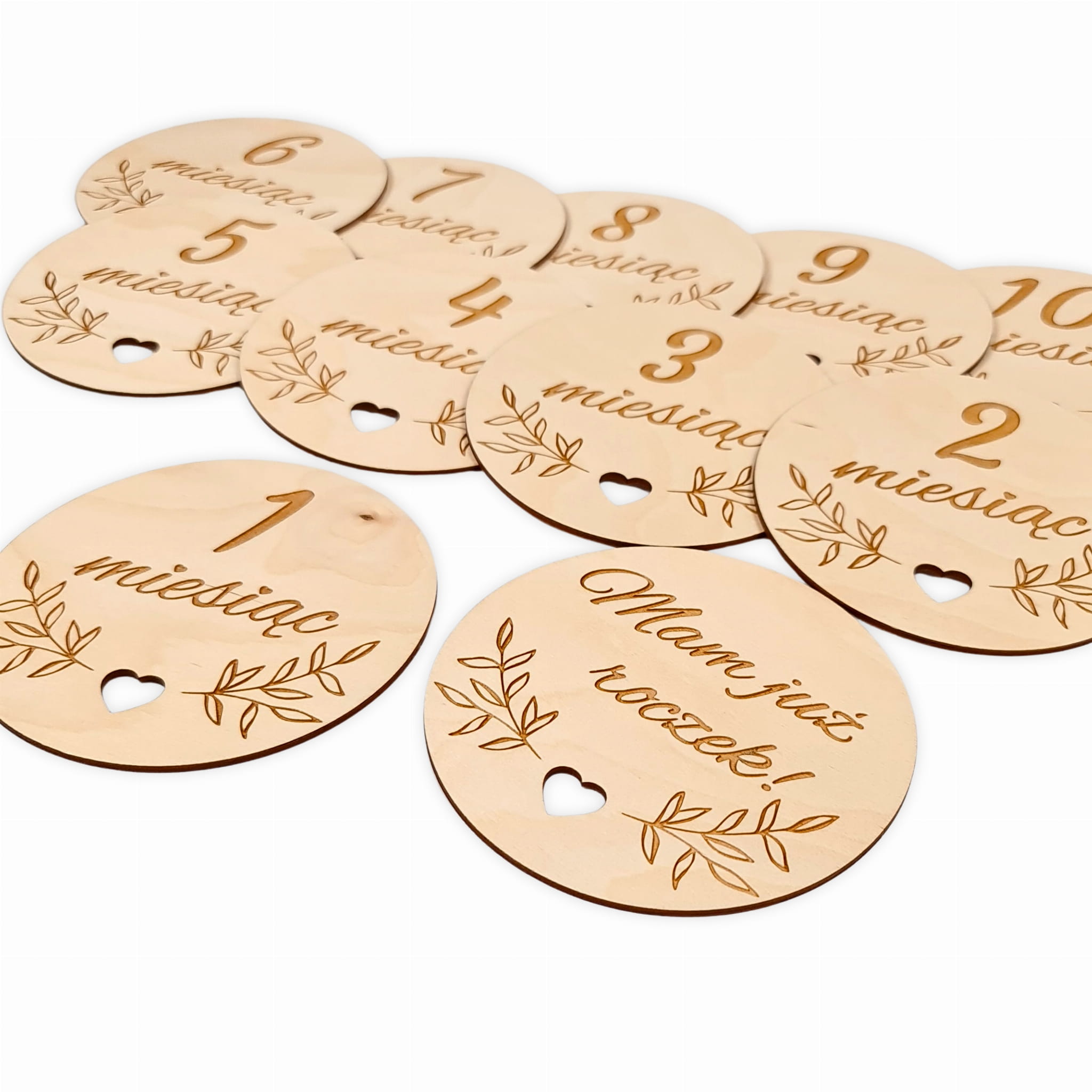 Tabliczki do zdjęć z miesiącami stały się ostatnio obowiązkowym gadżetem młodych rodziców. Nasz komplet drewnianych tabliczek służy do zdjęć dokumentujących pierwsze 12 miesięcy dziecka. Zestaw tabliczek to idealne rozwiązanie dla rodziców, którzy chcą w oryginalny sposób upamiętnić pierwszy rok życia swojego maluszka. Dzięki Naszym tabliczkom stworzysz piękna pamiątkę dla siebie lub prezent dla bliskich np. babci, czy dziadka. Tabliczki mogą się również dobrze sprawdzić jako prezent dla przyszłych rodziców.