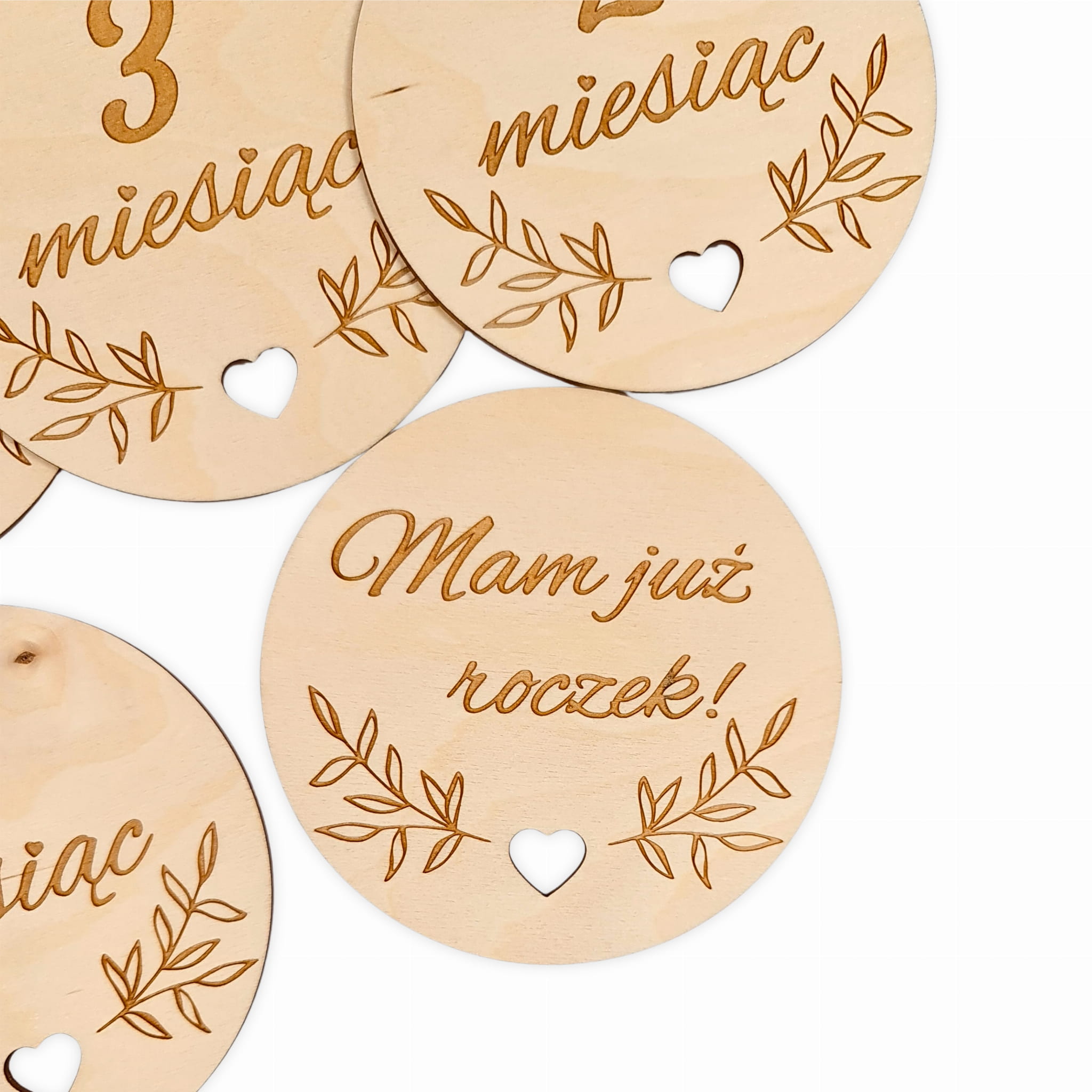 Komplet składa się aż z 13 tabliczek. W tym 11 z poszczególnymi miesiącami, jedna z napisem "Mam już roczek" oraz jedna tabliczka GRATIS z personalizowanym imieniem dziecka.
