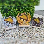 - Elegancki, metaliczny wygląd, doskonale współgrający z motywem ryby.