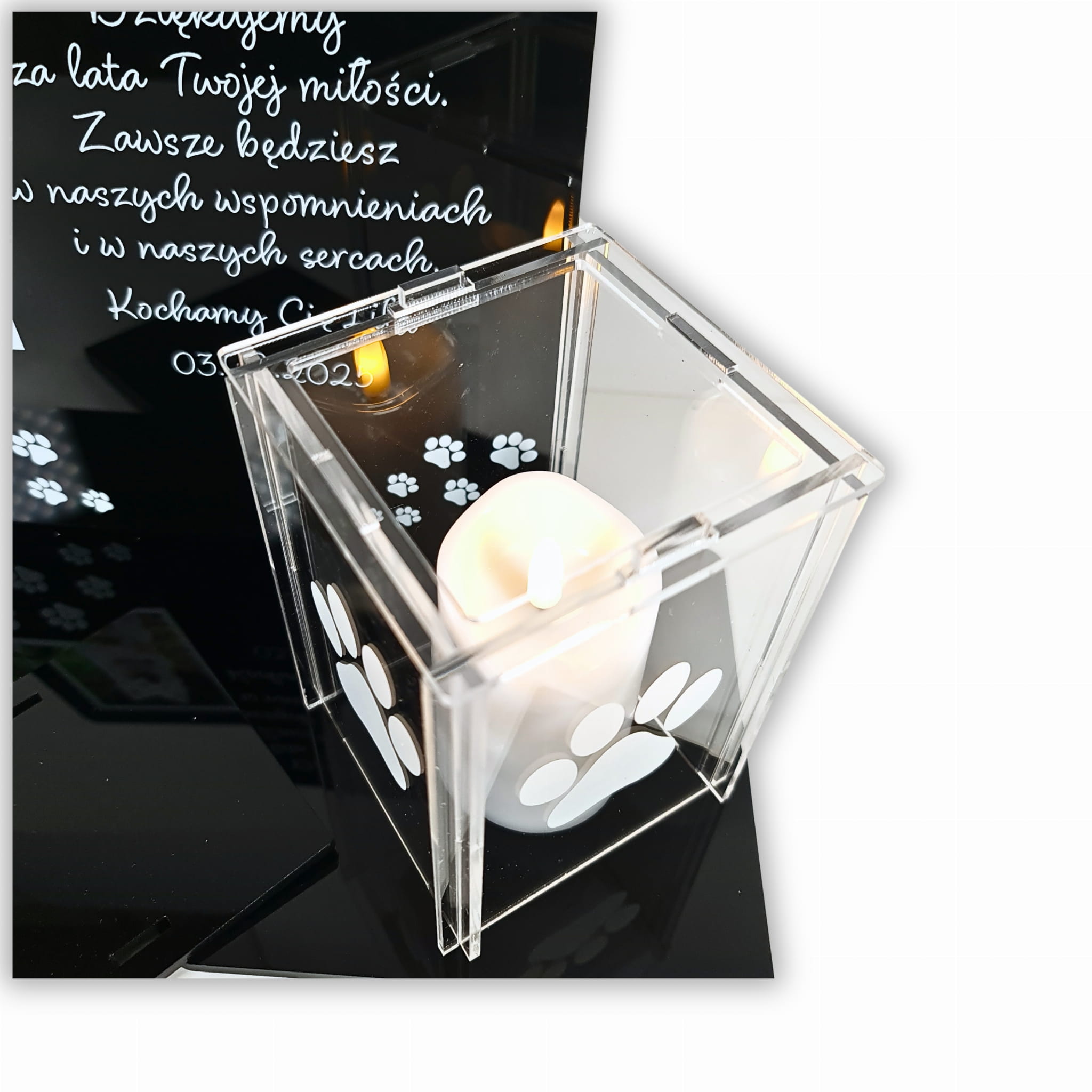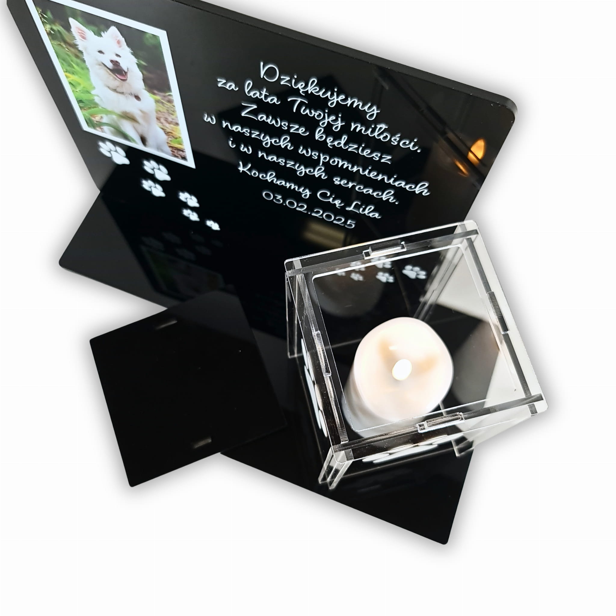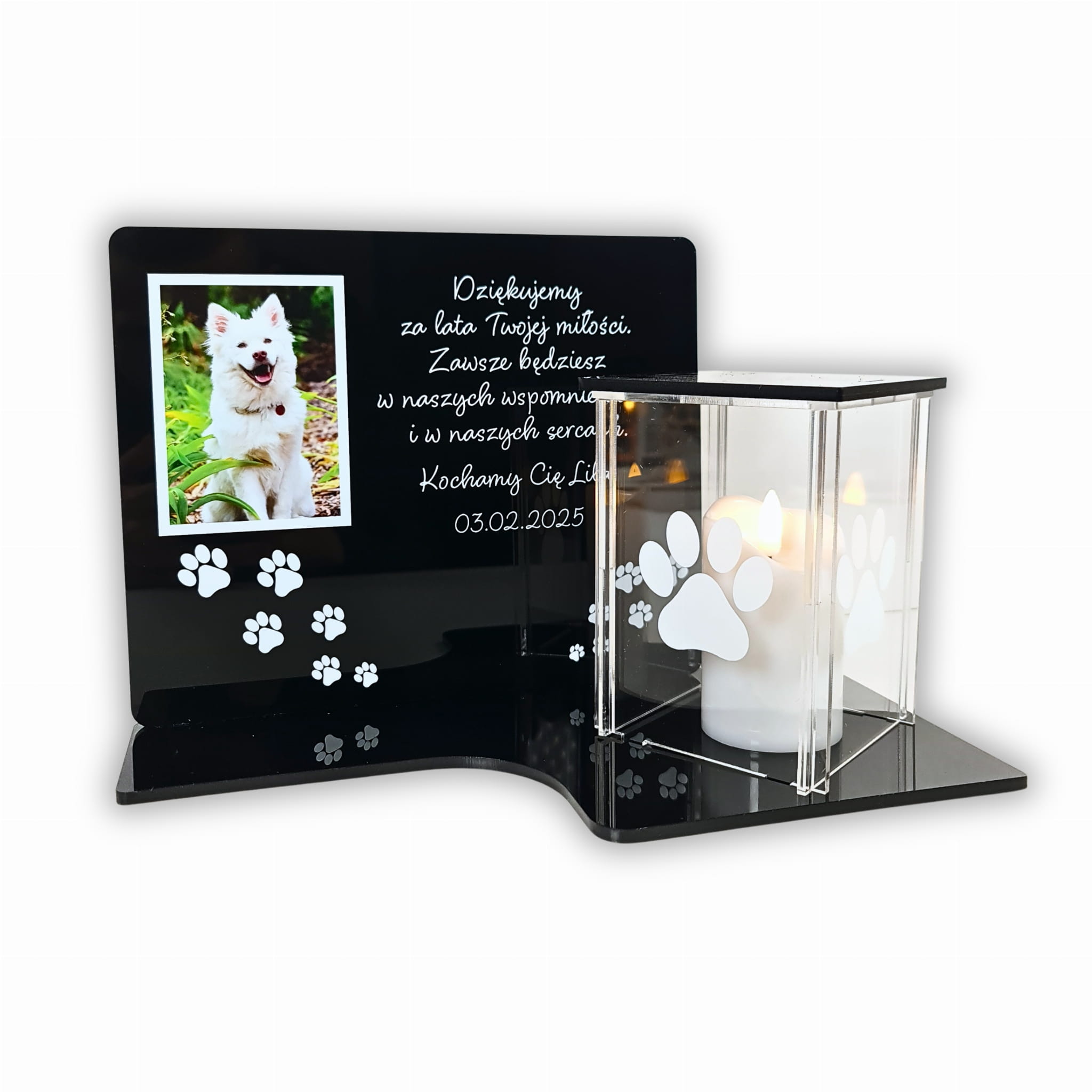 Znicz dla pieska z zdjęciem i łapkami na nagrobek dla psa